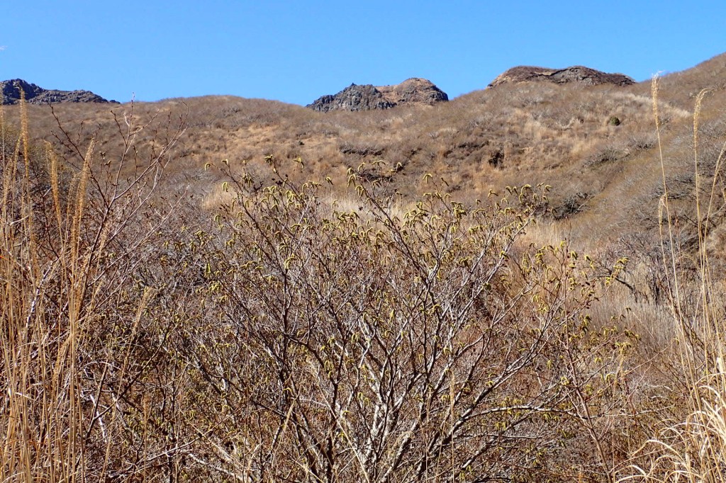 恒例の阿蘇マイポイントのベニハンノキ前蛹。食樹ヤシャブシは新芽が萌え始めています。