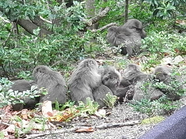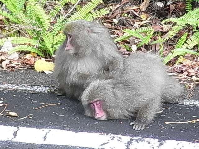屋久島の道路(特に西部林道)や林道を車で走っていると、よくヤクザルとヤクジカに出会います。