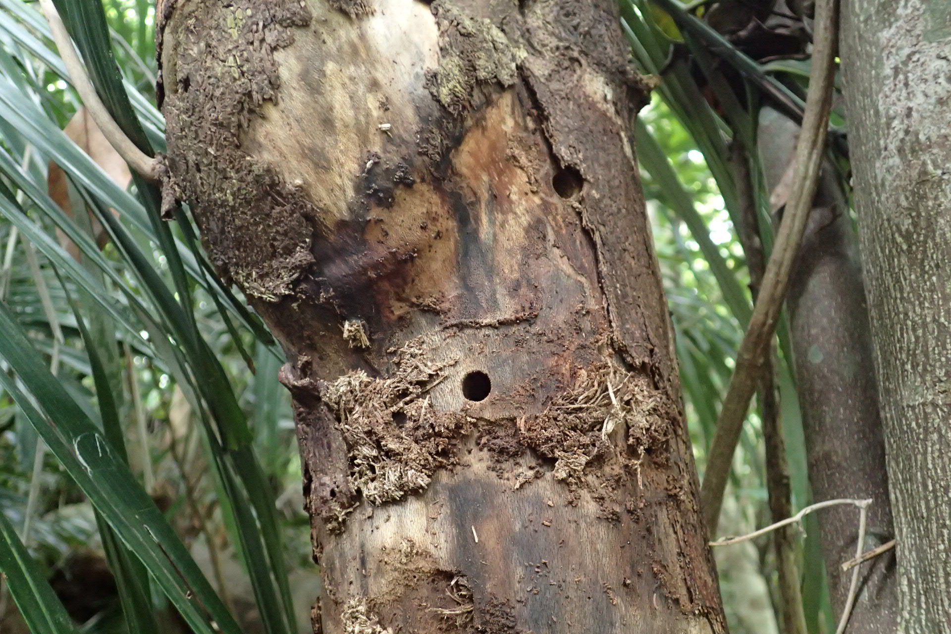 イシガキビロウドカミキリの脱出口(2015.3.14)