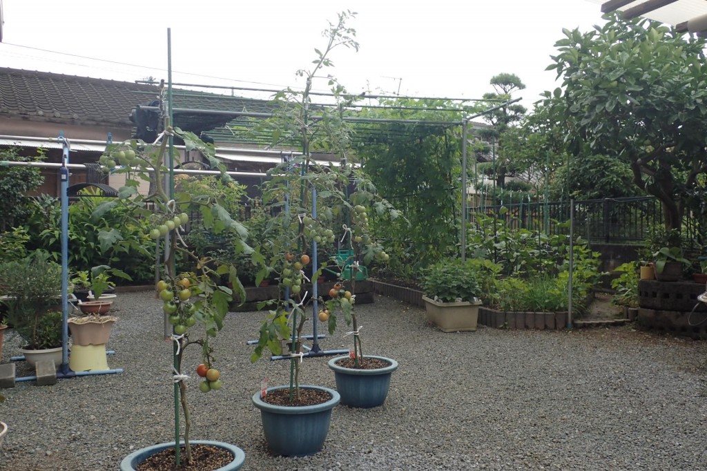トマトをはじめ茄子、ピーマン、ゴーヤにきゅうり等の野菜、大葉やニラ、小ネギ、トウガラシといった