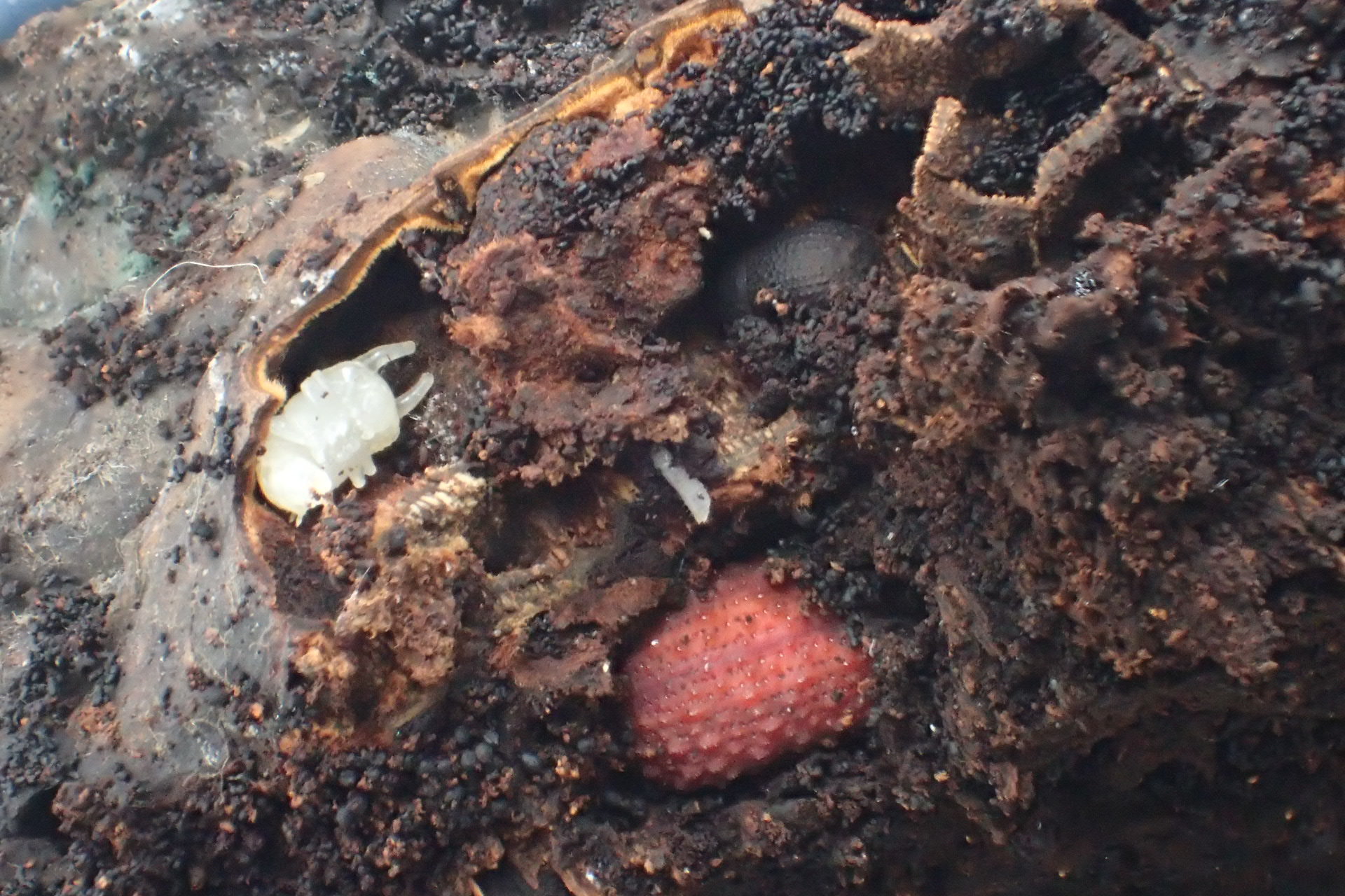 おや、下方にクワガタゴミダマのテネラル個体も居ます。コイツも食い入っていたのか。