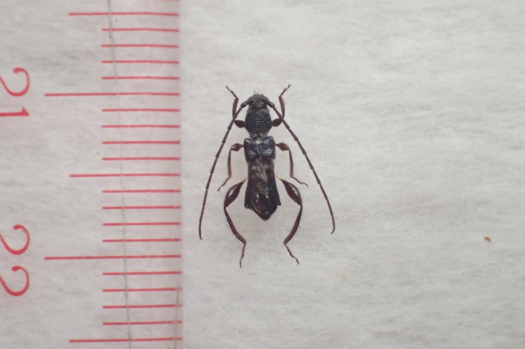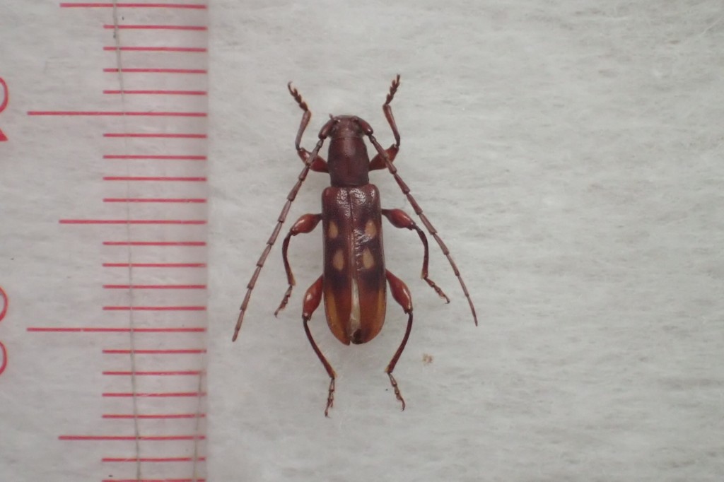 野外ではなかなか遭遇する機会が無い少ないトラカミキリ。タブの材から羽脱したもの。