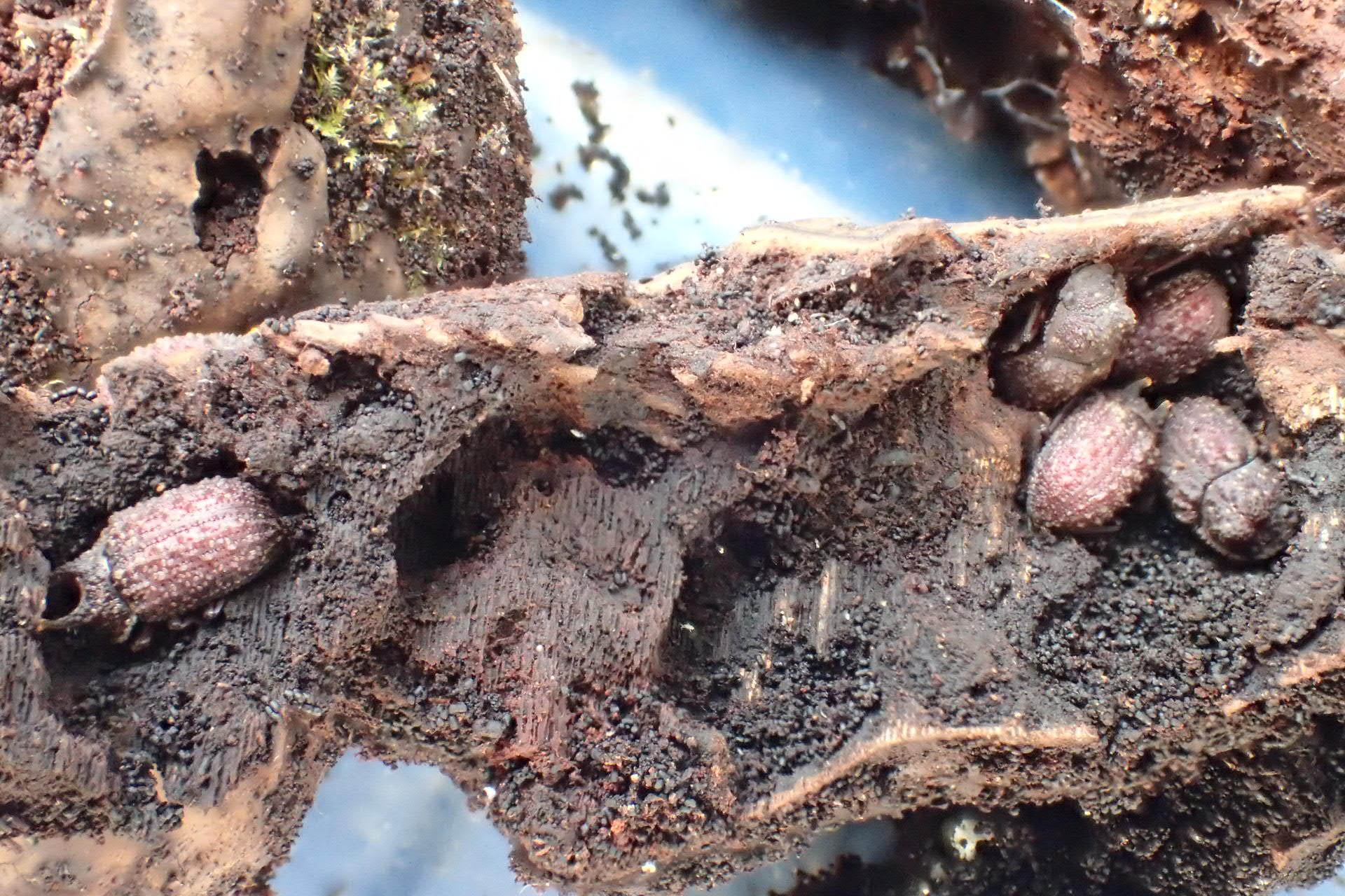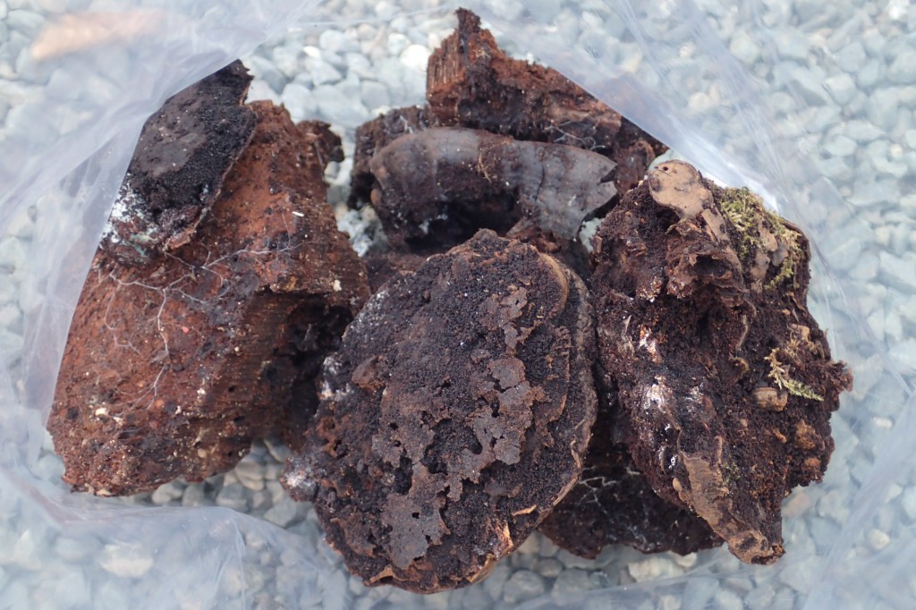 先日、西表島で採ってきたイリオモテコブスジツノゴミダマが入ったサルノコシカケ様の盤状キノコを、