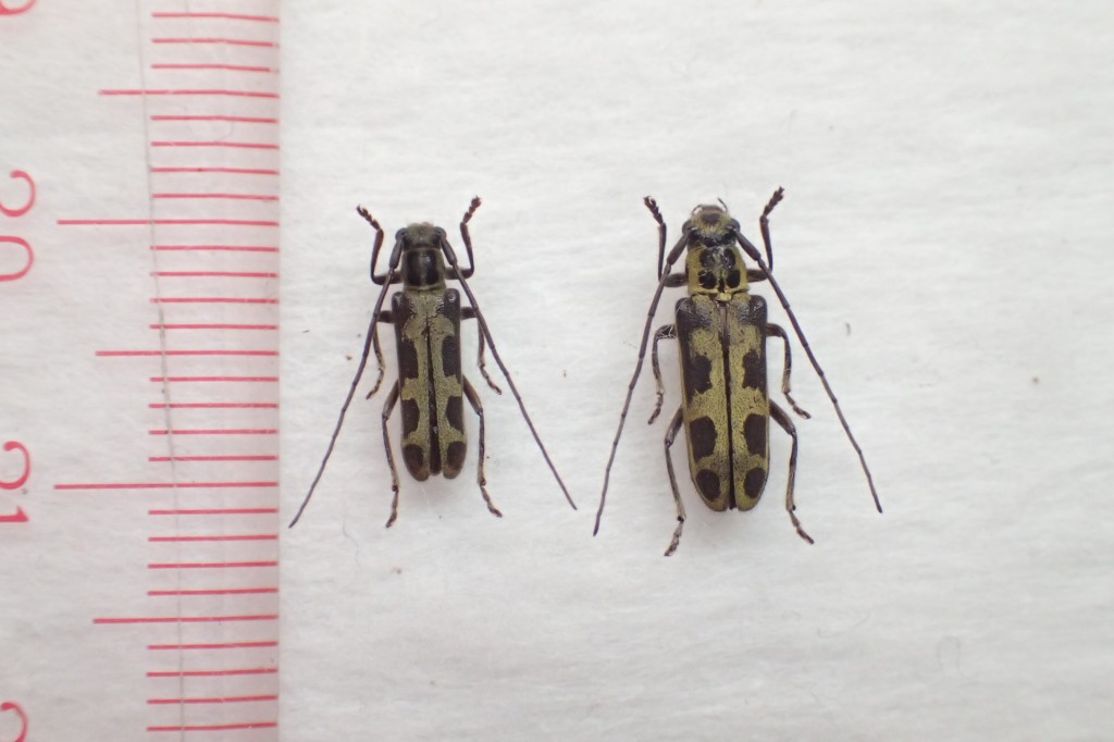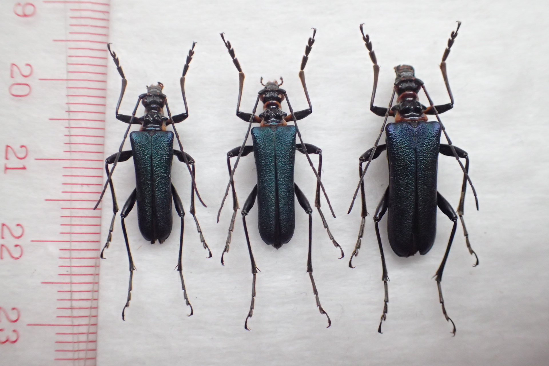 人気種なるも全国的に見れば普通種のフタコブルリハナカミキリですが、九州においては珍種です。