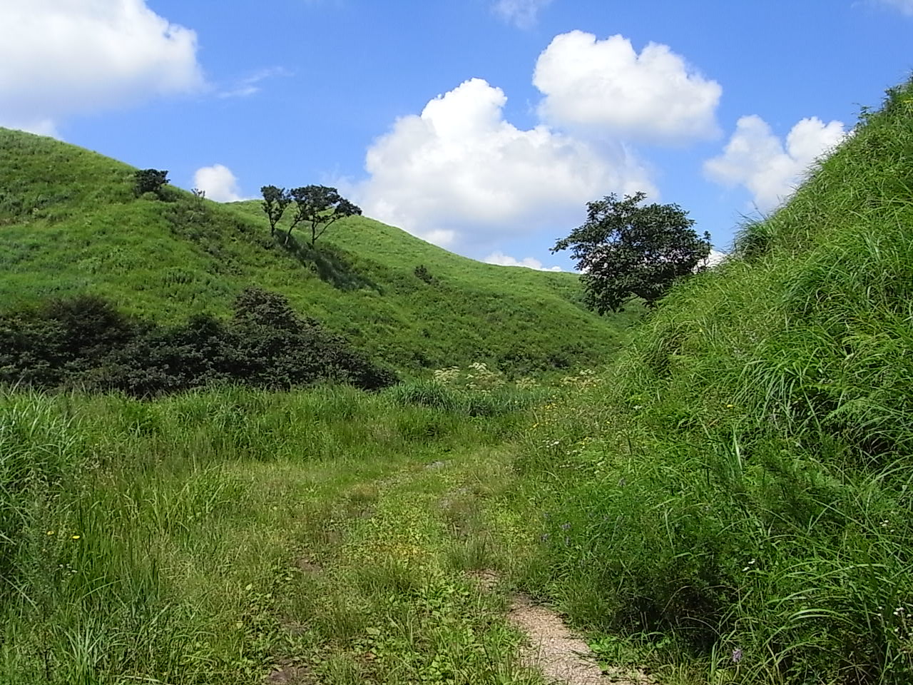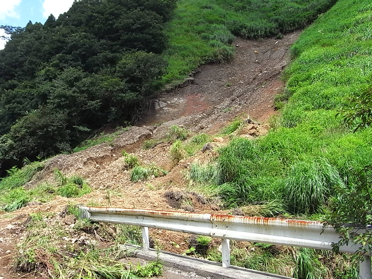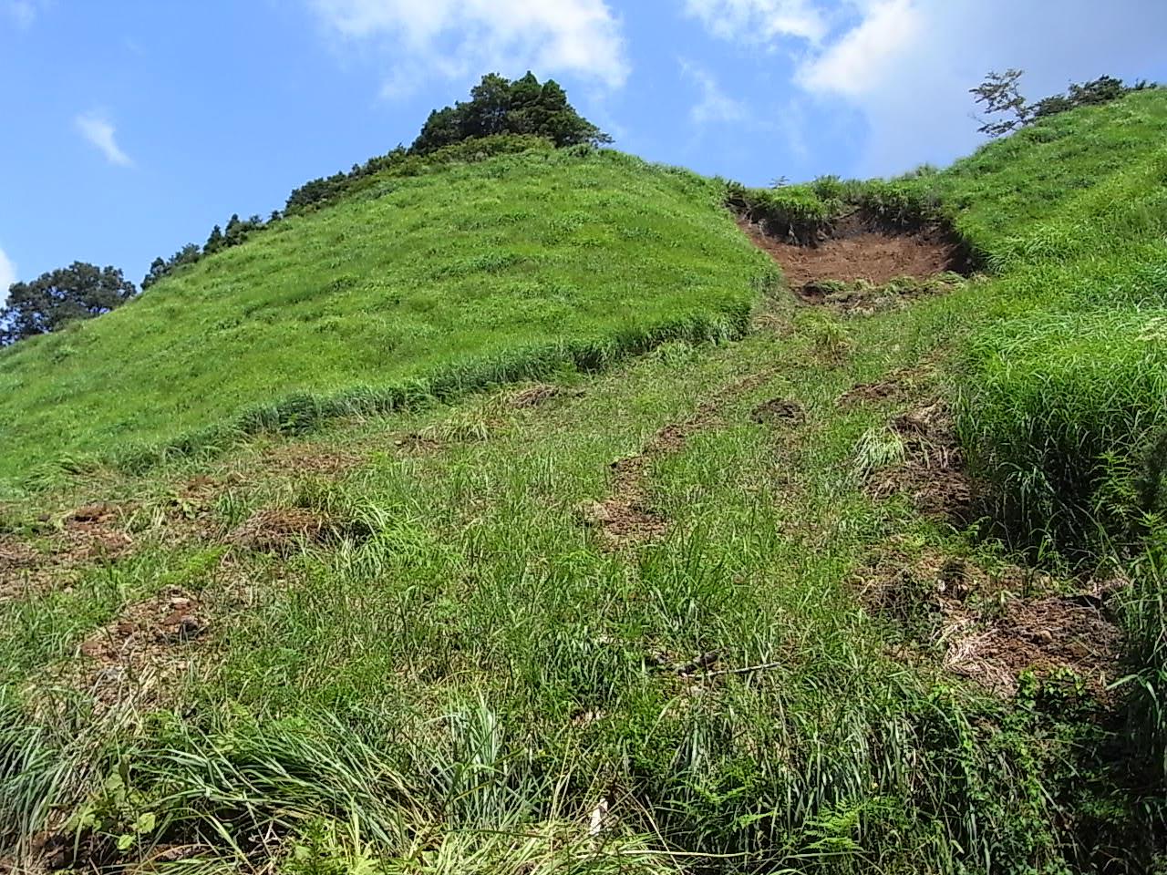 それは、梅雨期の集中豪雨による草原斜面の土砂の崩落です。