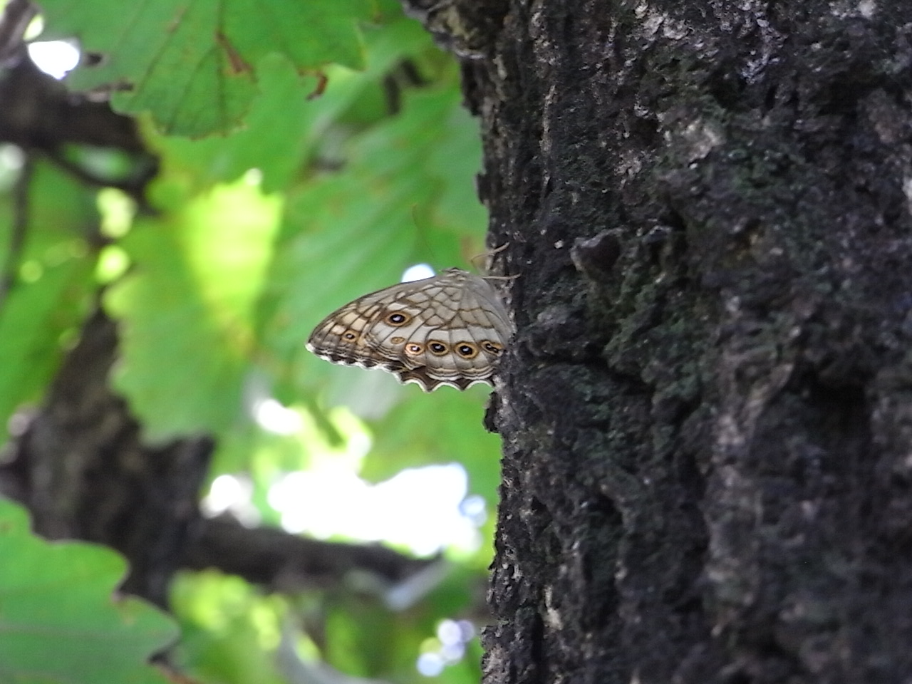 コナラの樹冠に留まるキマダラモドキ♀です。