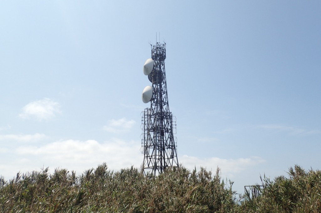 麓の林道から小さく見えたアンテナの真横を通り山頂へ。