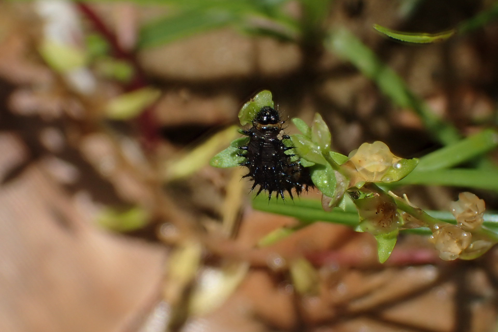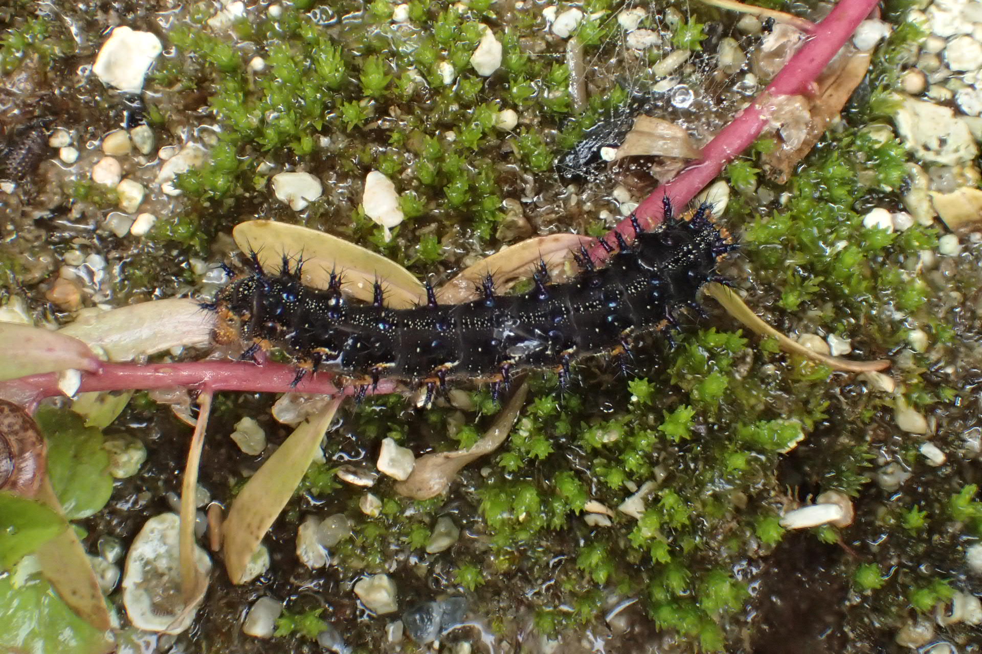 ♀があちこちで産卵しており、路傍では幼虫も目に付きます。