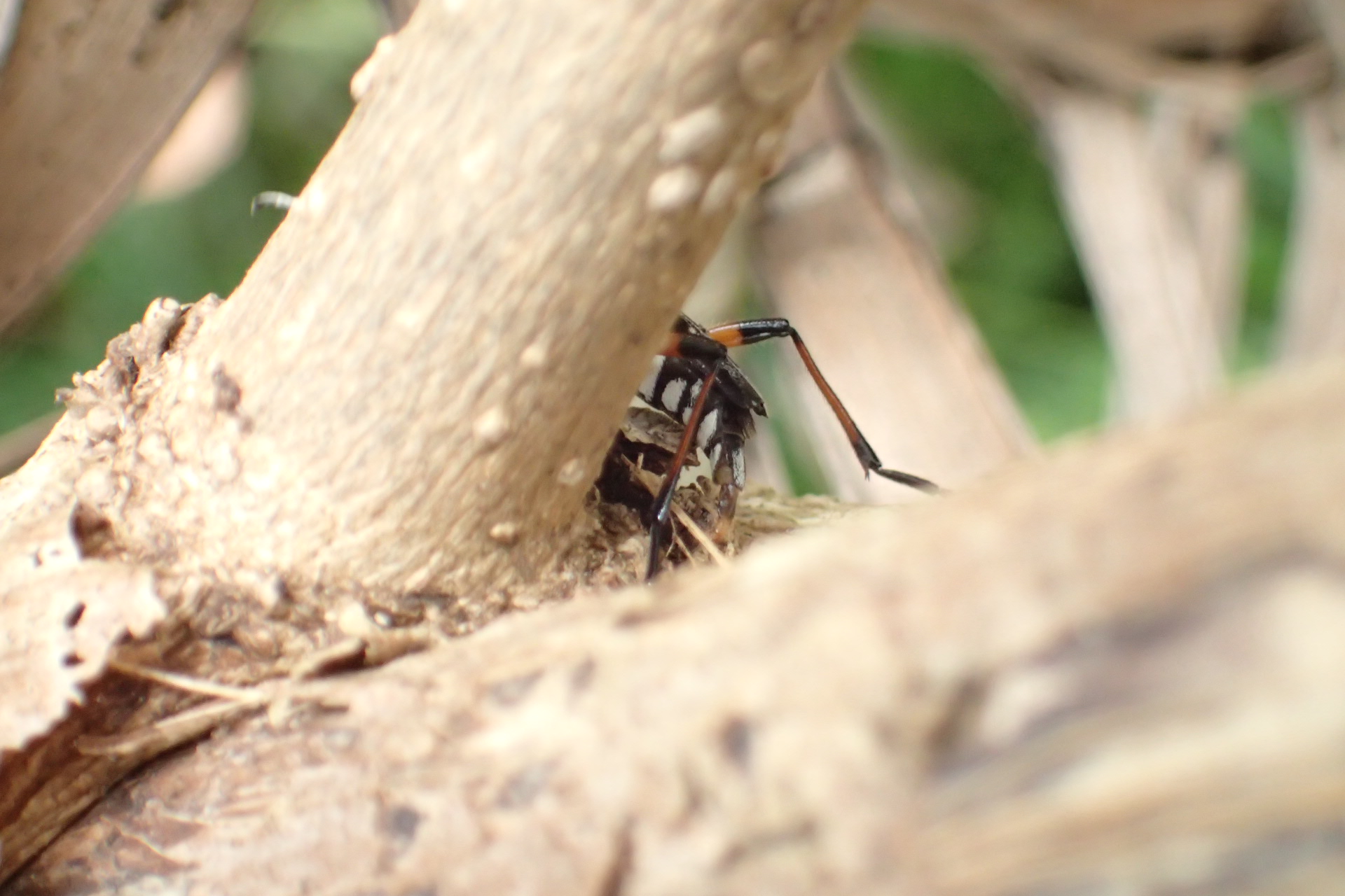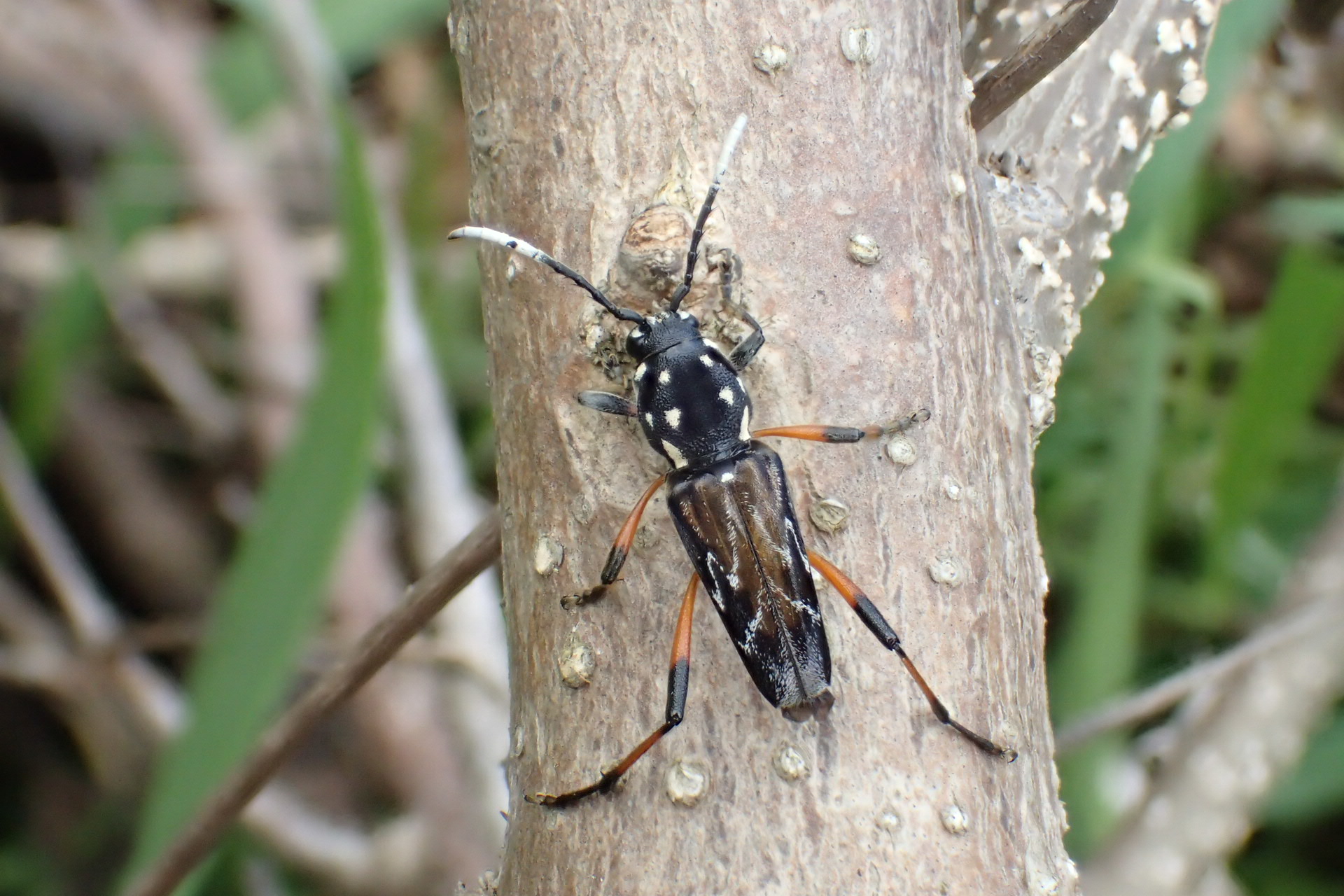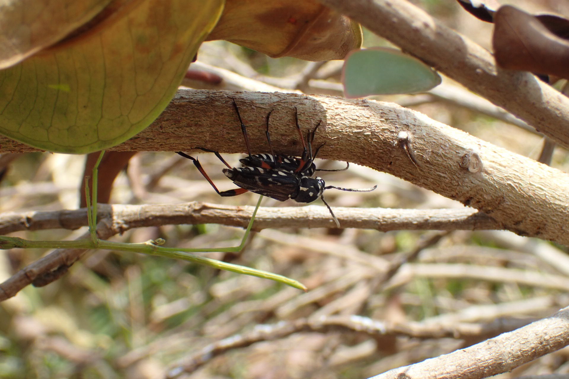 近寄って確認してみると、クワ科などには来ないはずのヤエヤマムネマダラトラカミキリ。