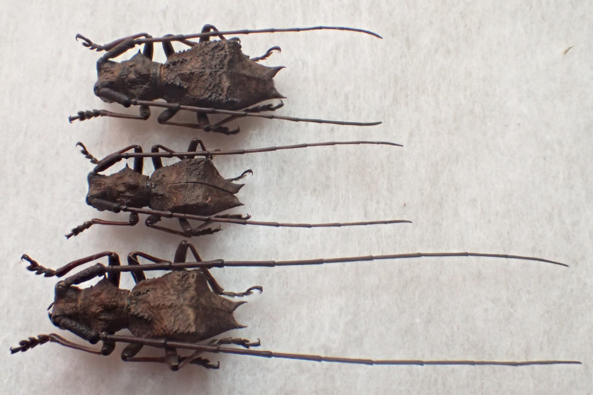 これでもか、というくらいに翅端が張り出し(特に♀)、トゲの長さも十分。