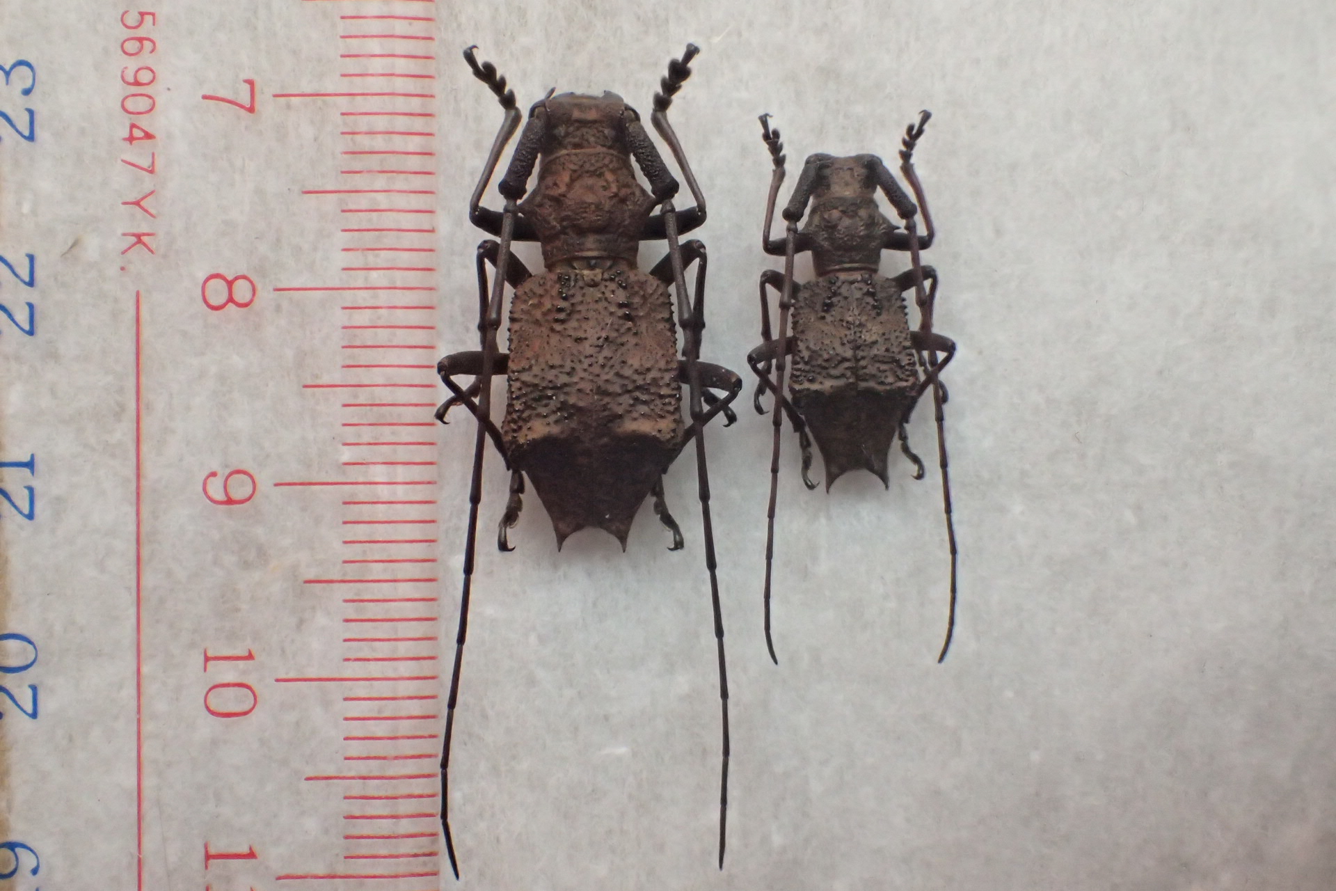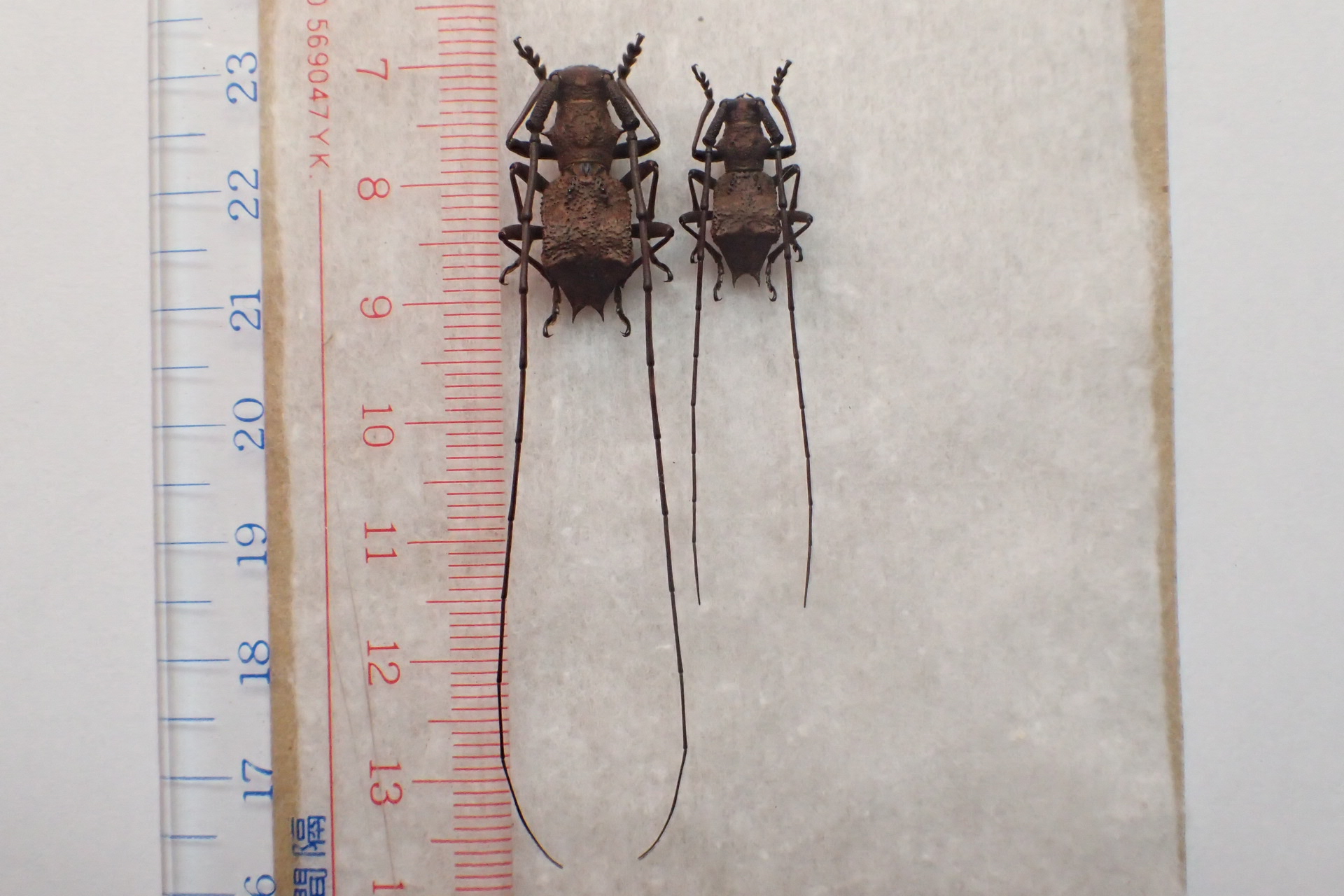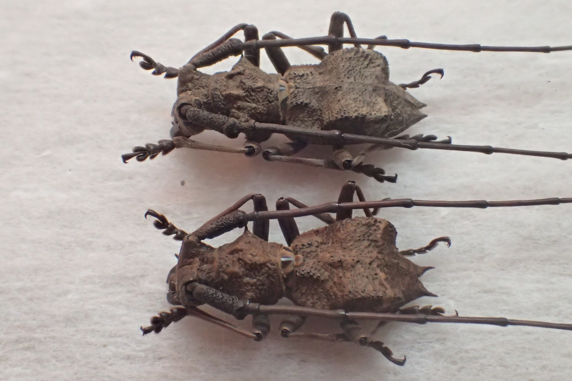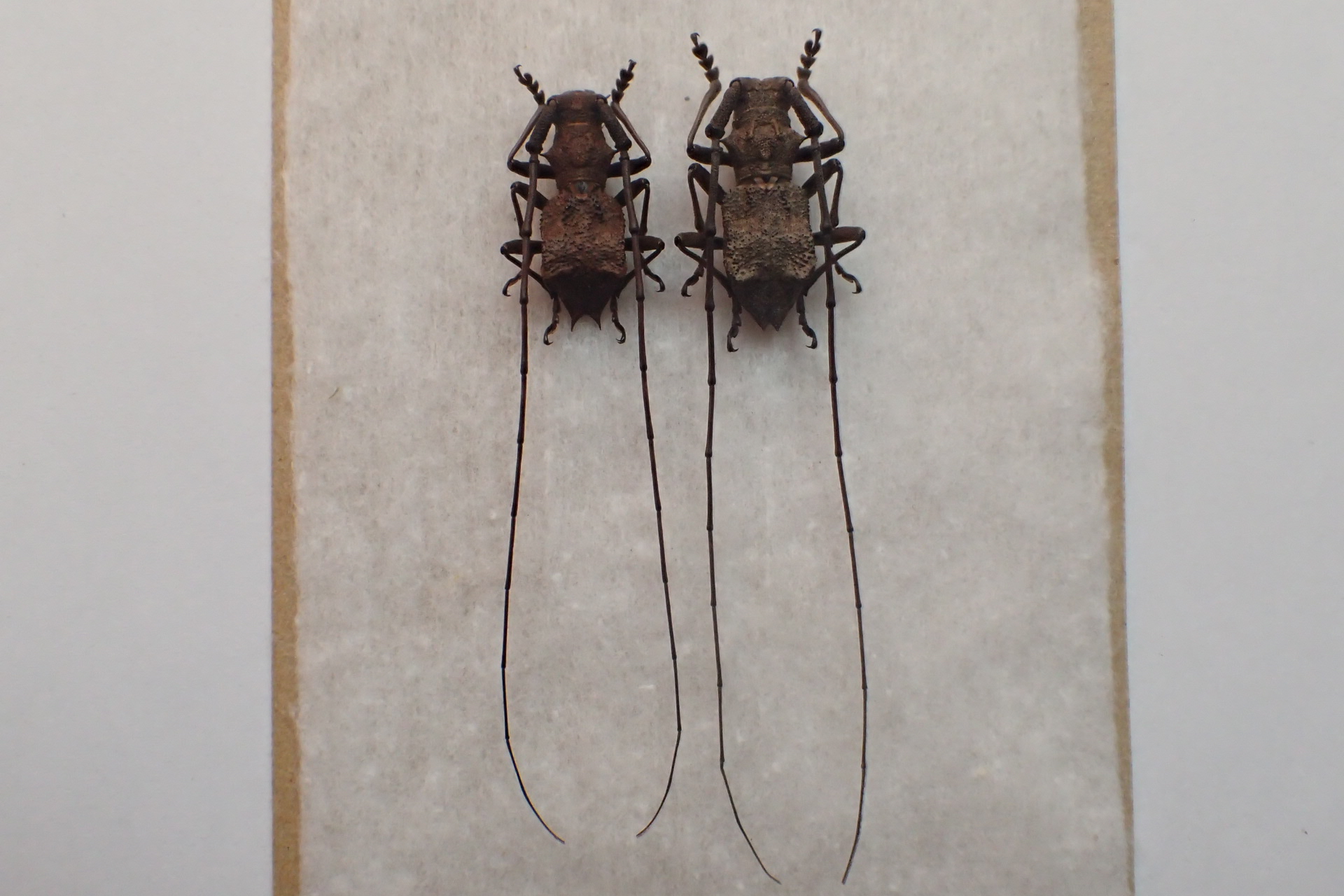 次はナンキコブの特大飼育個体。上の野外品と♂♀同士を並べてみると翅端のトゲはやや短め