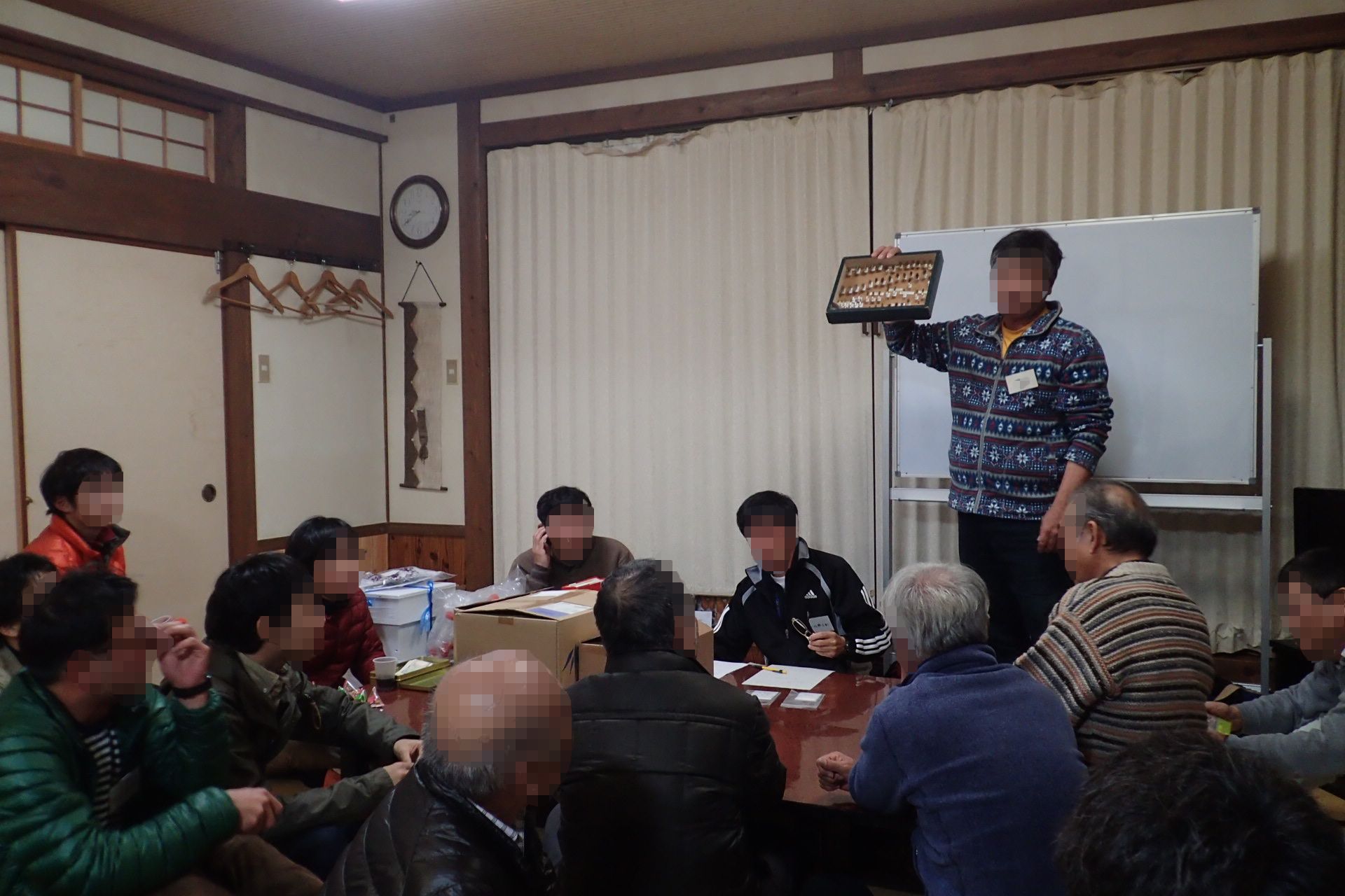 採集を午後3時頃に切り上げて宿に戻ると、既にパラパラと参加者が集まっています。