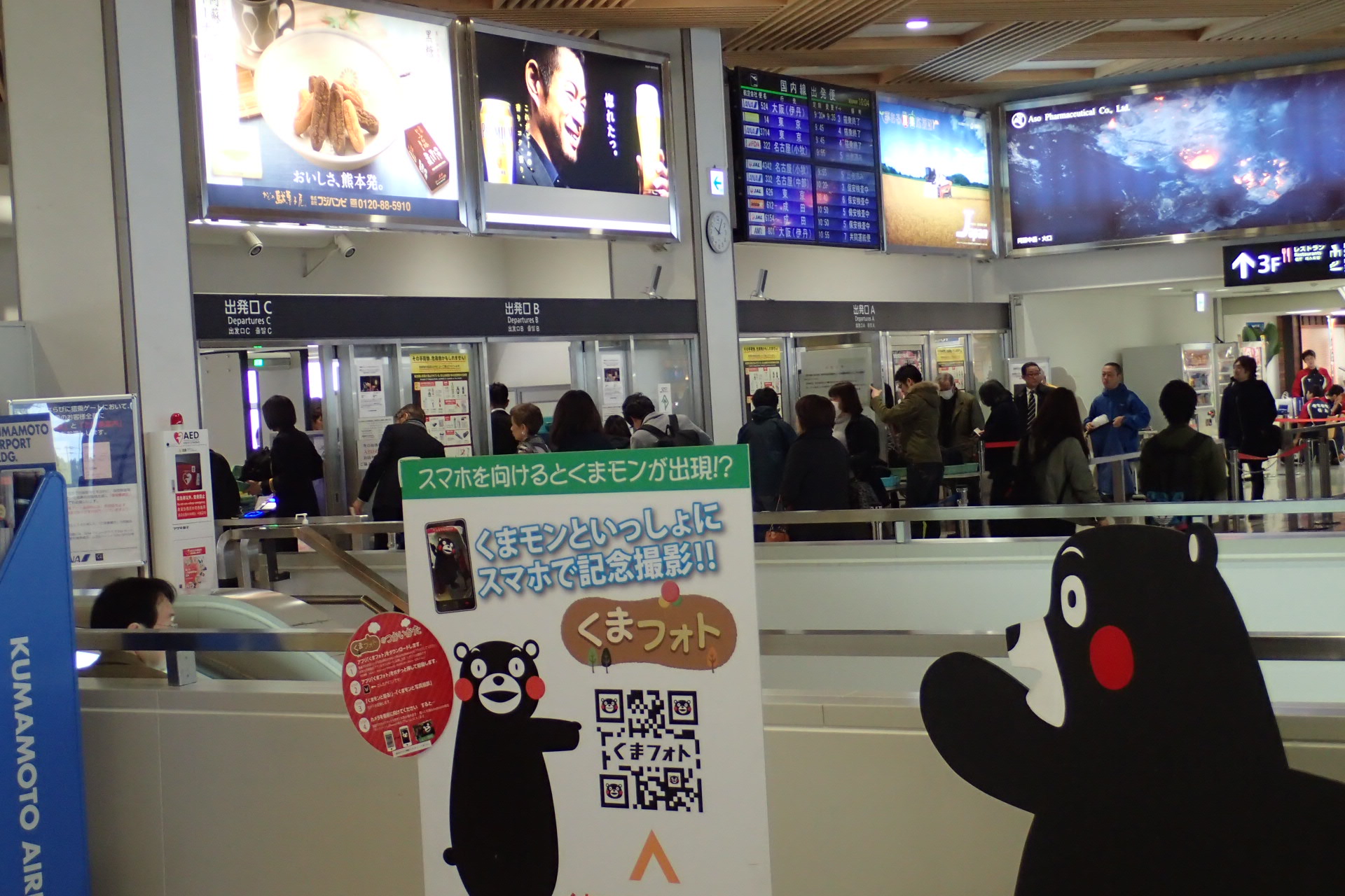 阿蘇くまもと空港の手荷物検査所の前にて。
