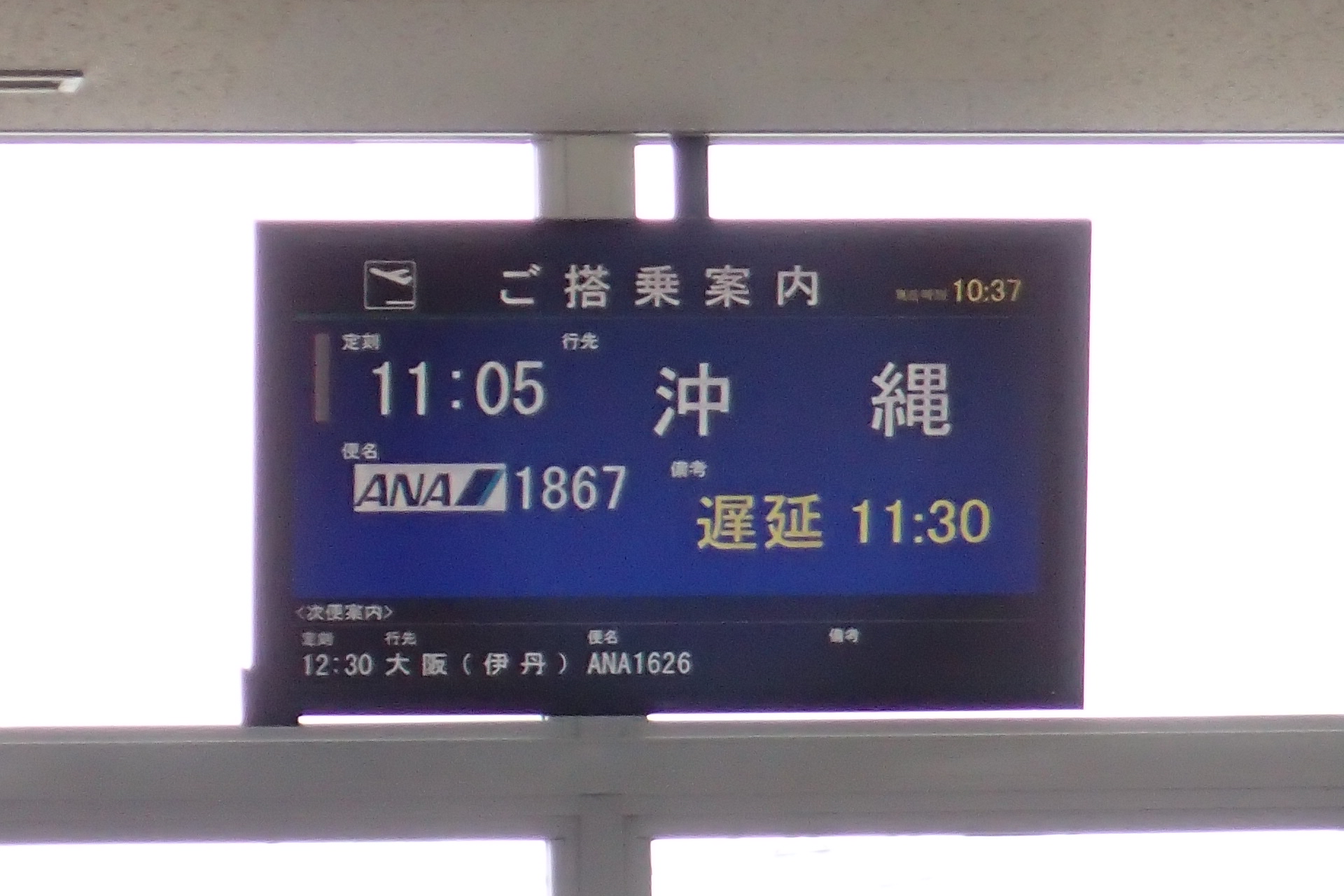 沖縄便は到着便の遅れだとかでいきなり25分遅れ。