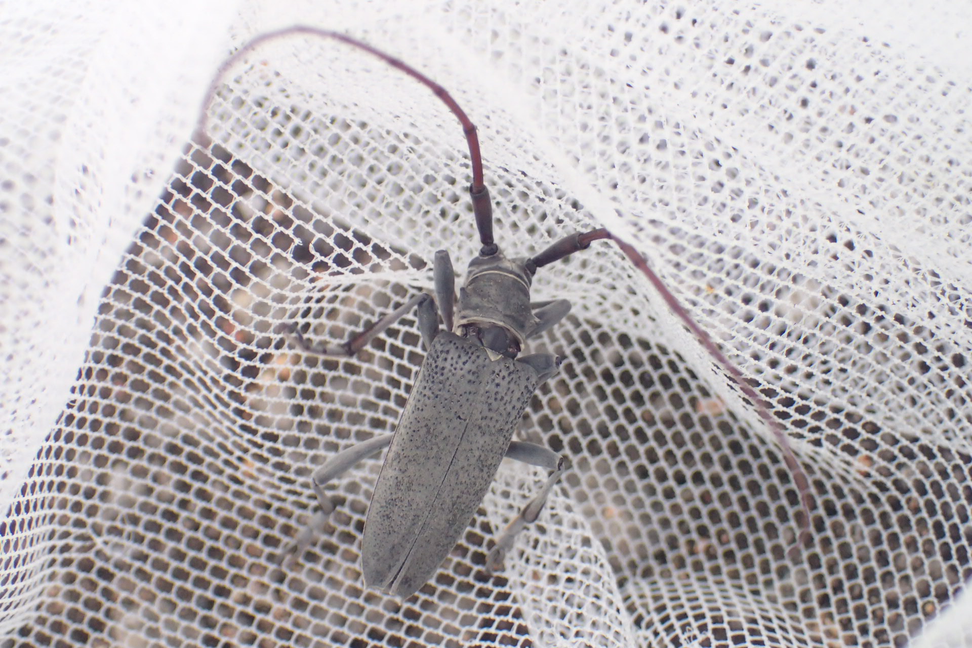 スウィーピングでネットに入ったイシガキフトカミキリ。