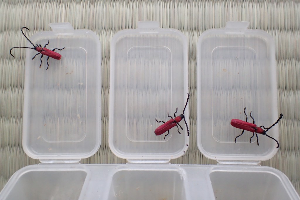 奄美大島でマツダクスベニカミキリが羽脱(2018.4.16)