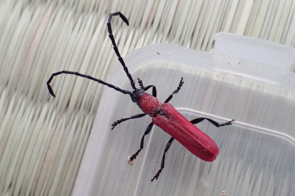 全身真っ赤、触角も長くてカッコ良く、特に好きなクスベニです。