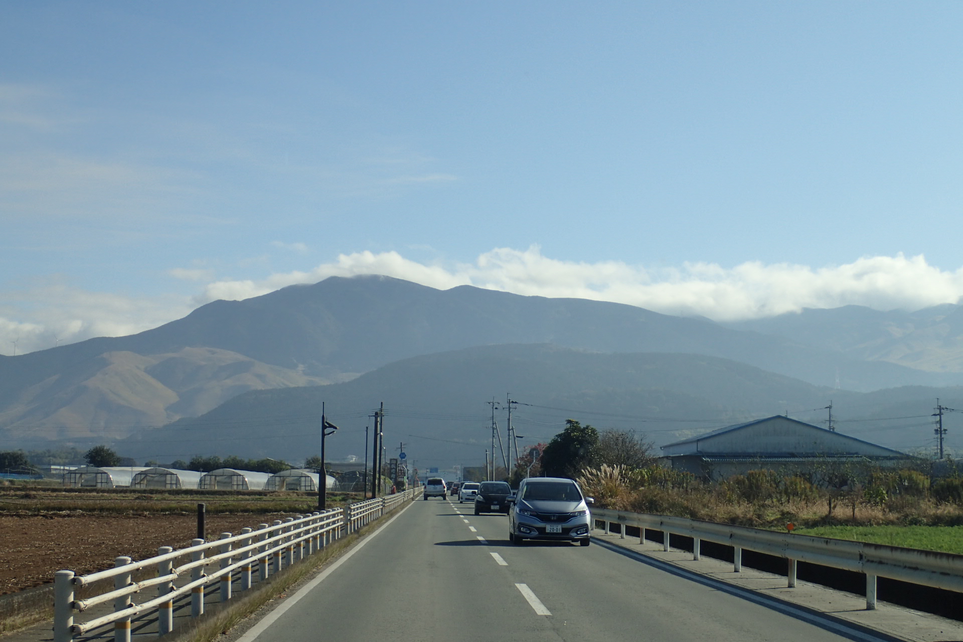 熊本市内から熊本空港の近くを通り過ぎると、阿蘇連山への取り付きの山々が見えてきます。