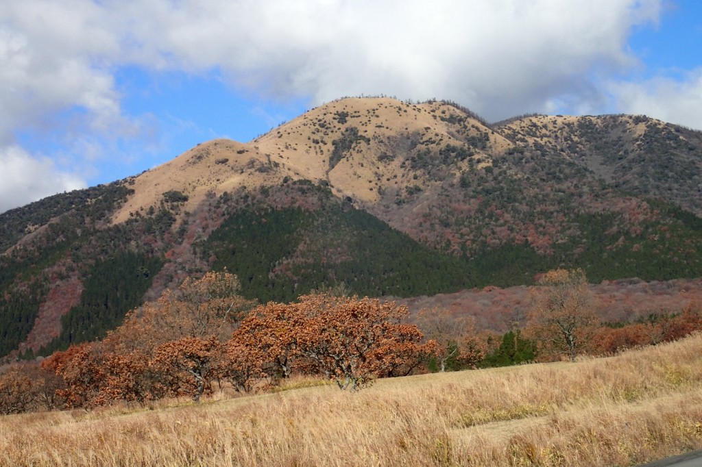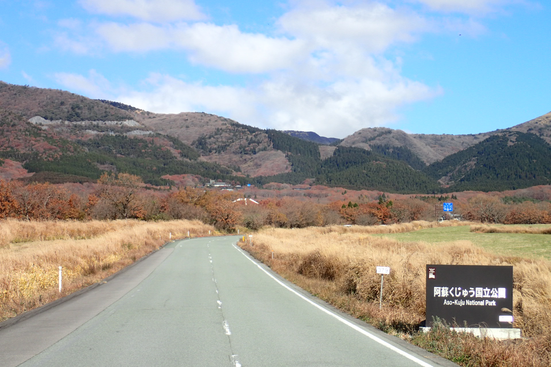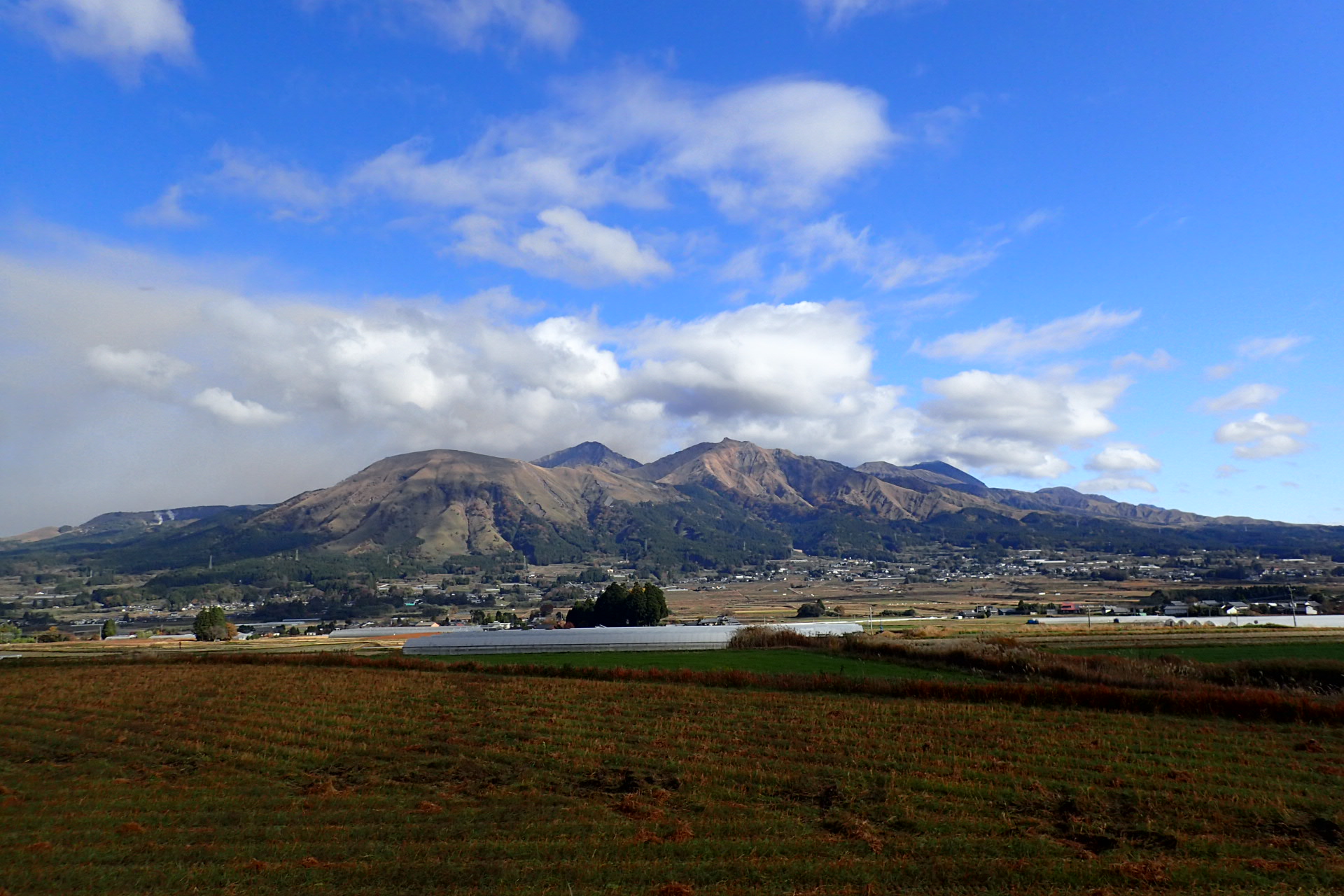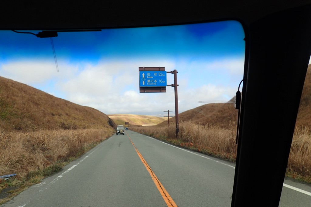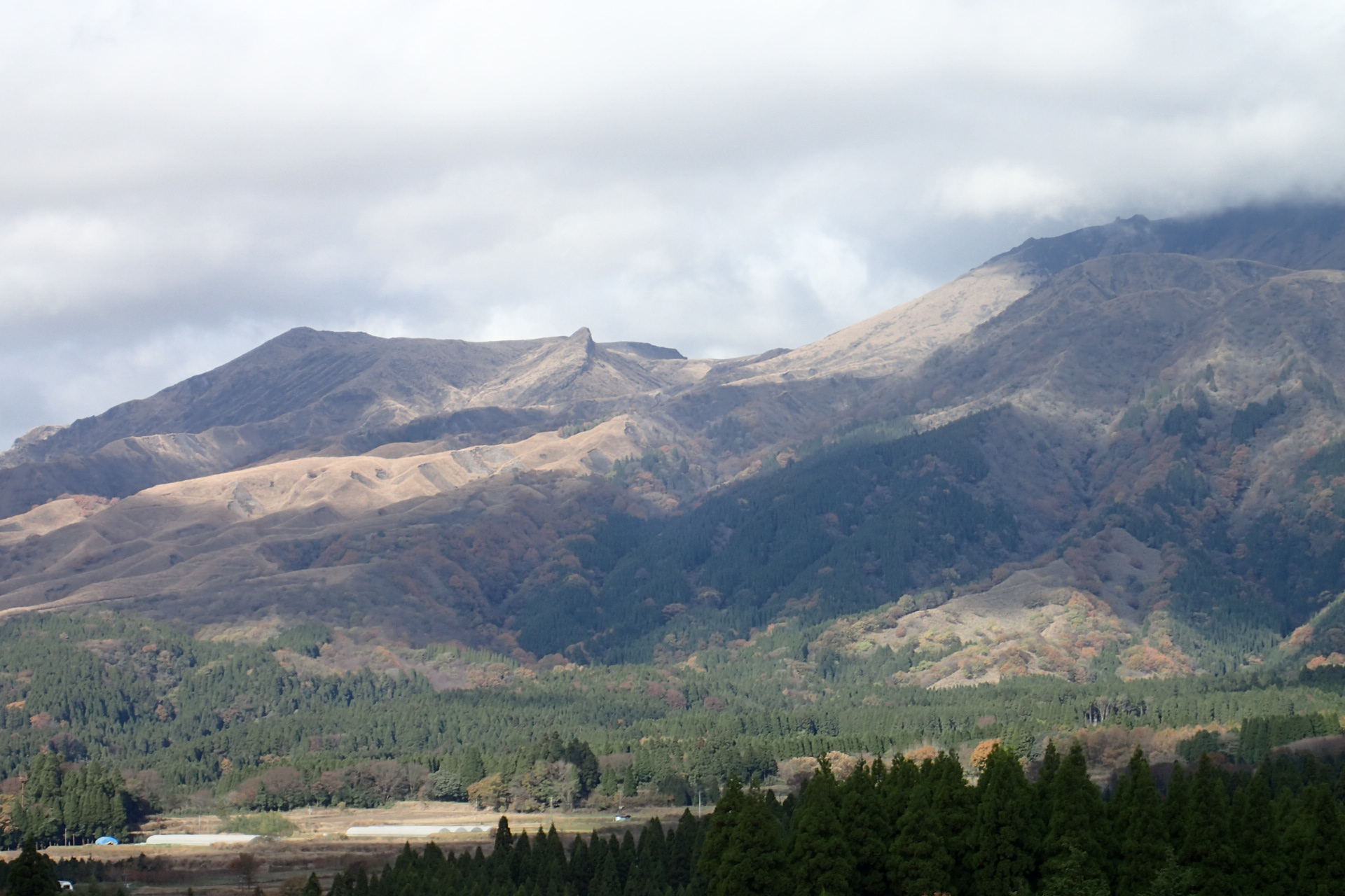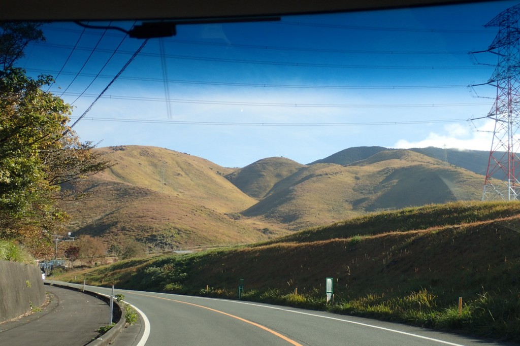 カルデラの阿蘇の町を抜けると今度は九重連山の取り付きの山々が見えてきます。此処からは