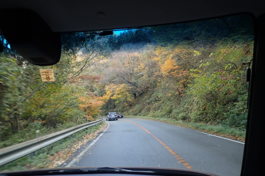 これまでに無かった落葉樹林帯を暫く走ると・・・