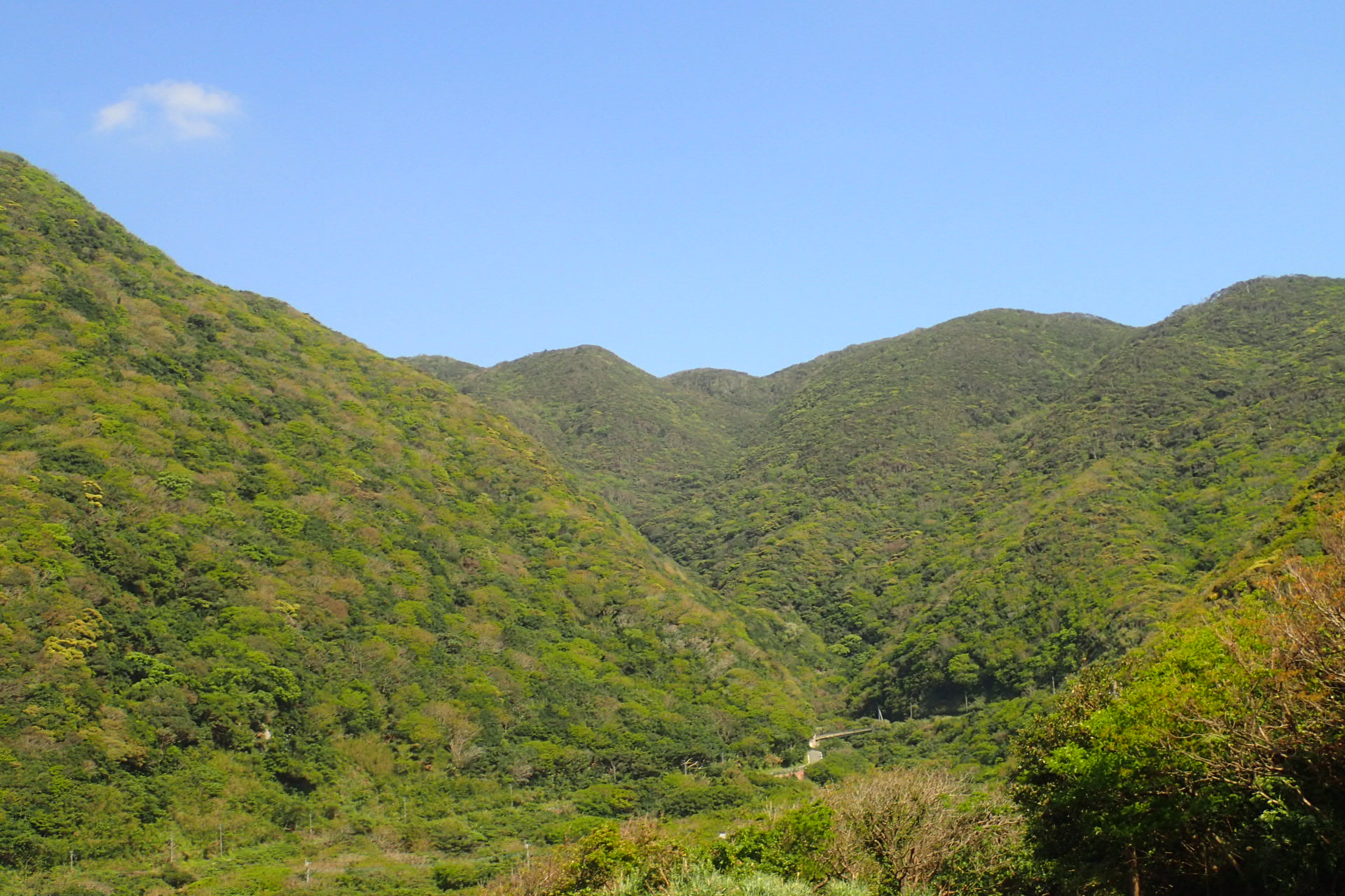4月の声が聞こえている今、奄美の山々は新緑の薄緑色で全山が覆われています。