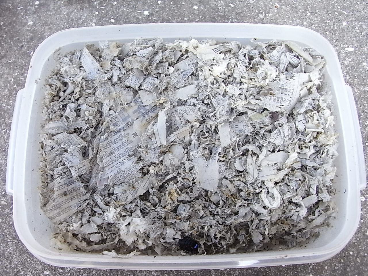 たくさんの個体が動き回るので、採集時に入れていた新聞紙が細かく粉砕されているのが分かりますね。