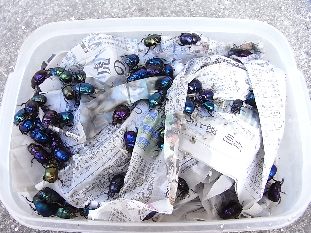 野外から採ってきた糞虫は体内に動物の糞や汚物等を溜め込んでいるため、殺虫する前に