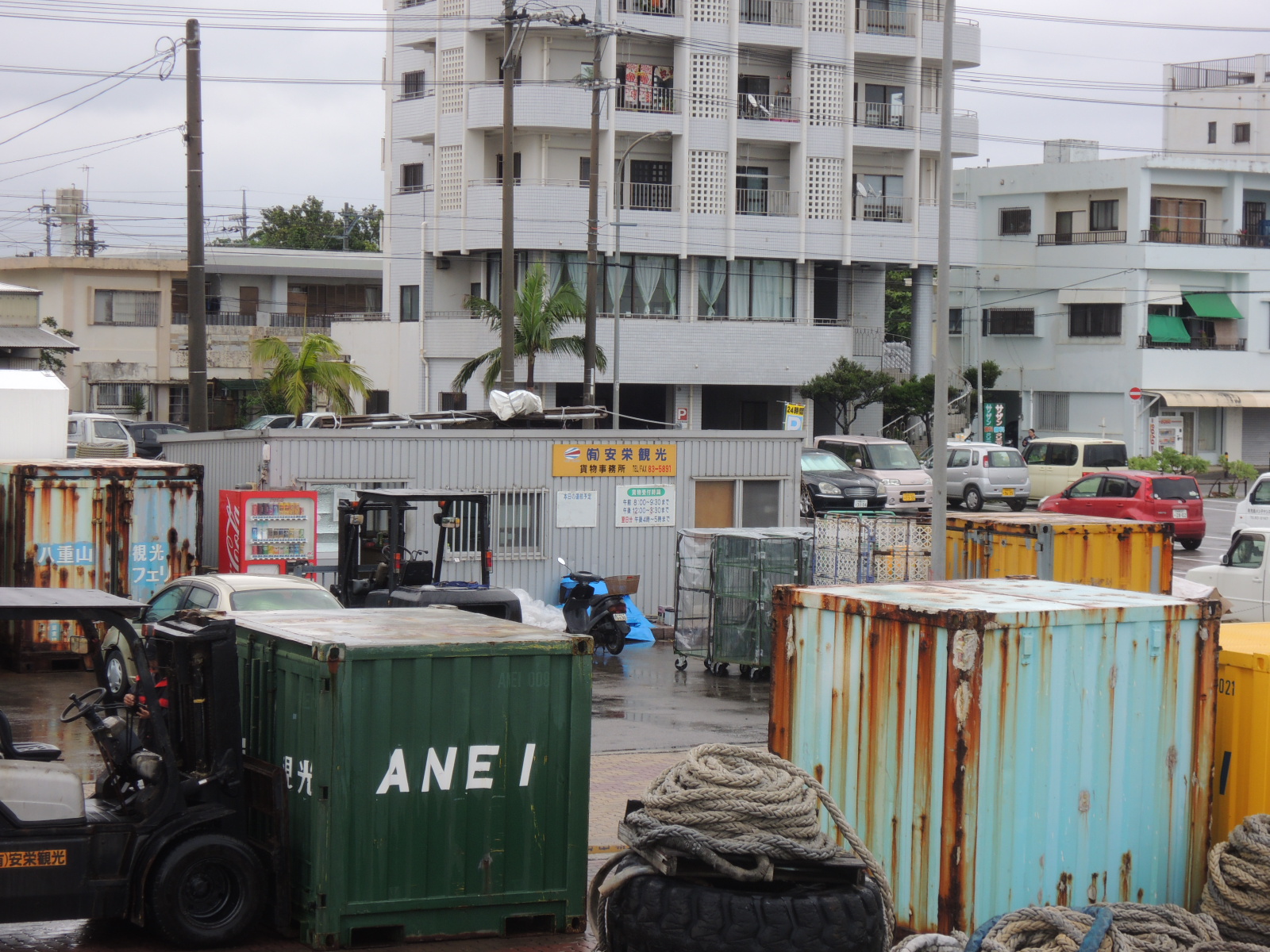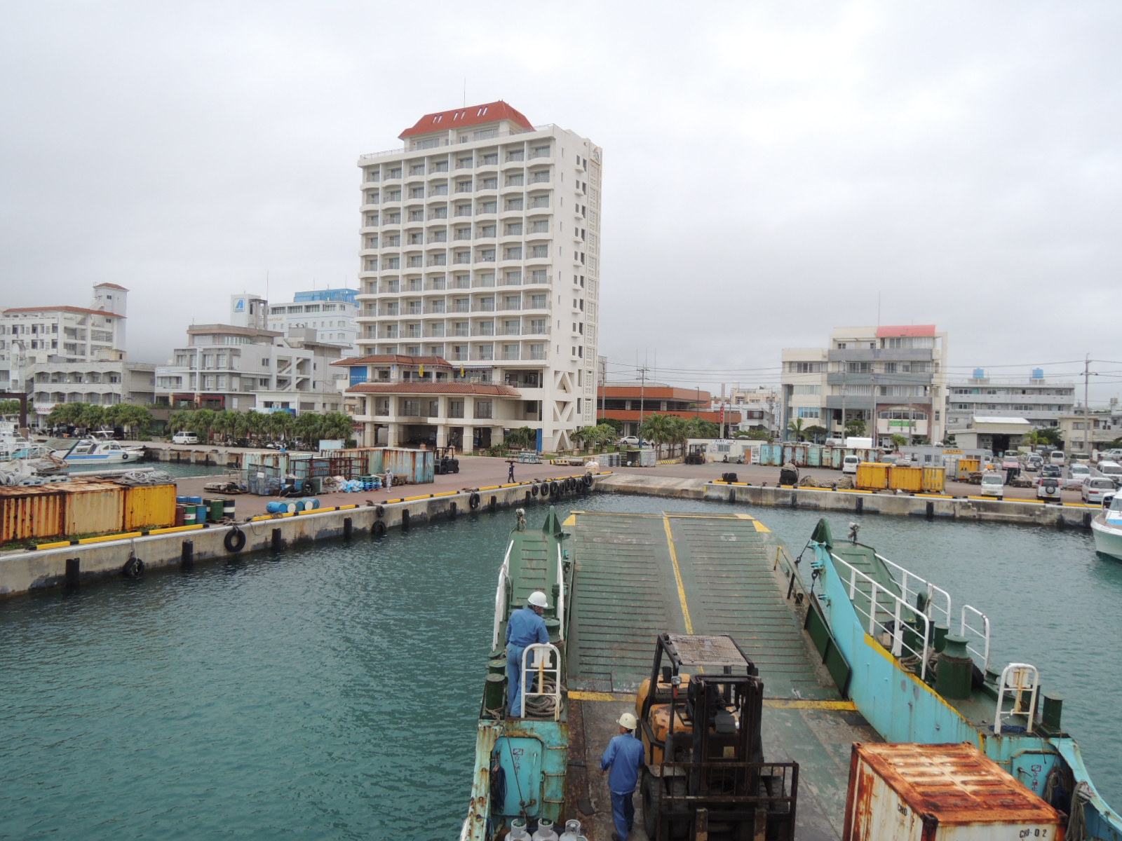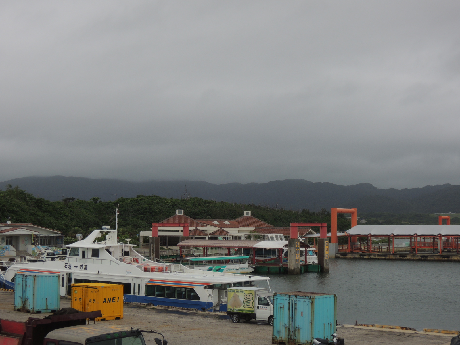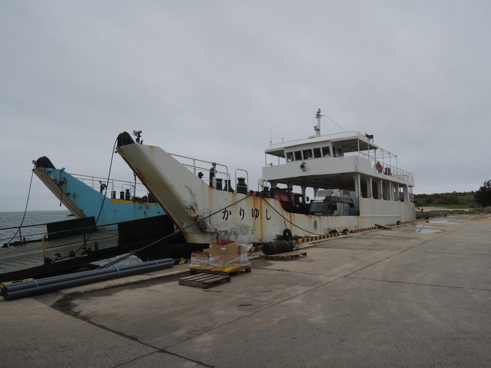 貨客船の発着場所は埠頭でも辺鄙なところにあり、大勢の一般旅行者がたむろする離島ターミナルが