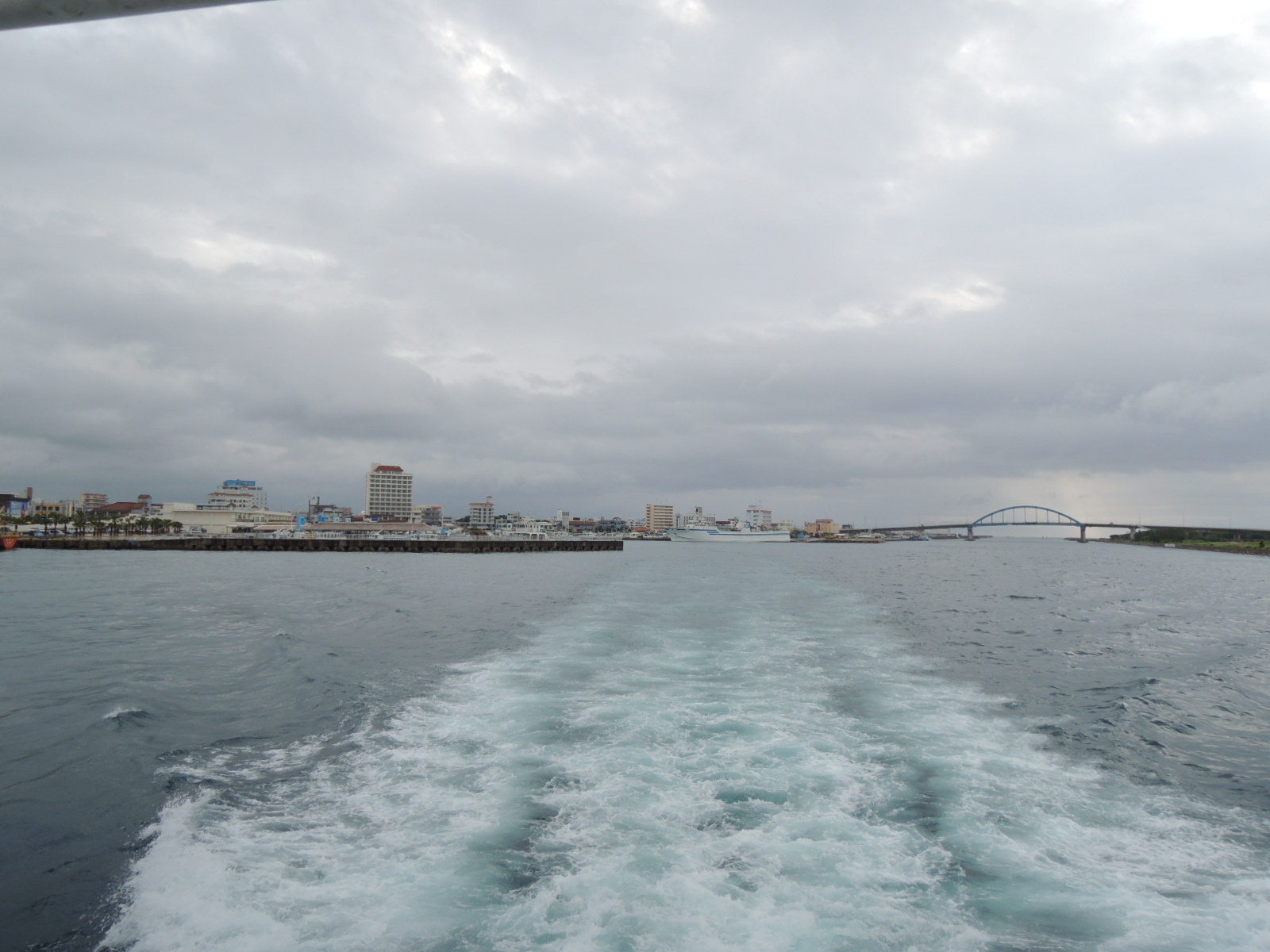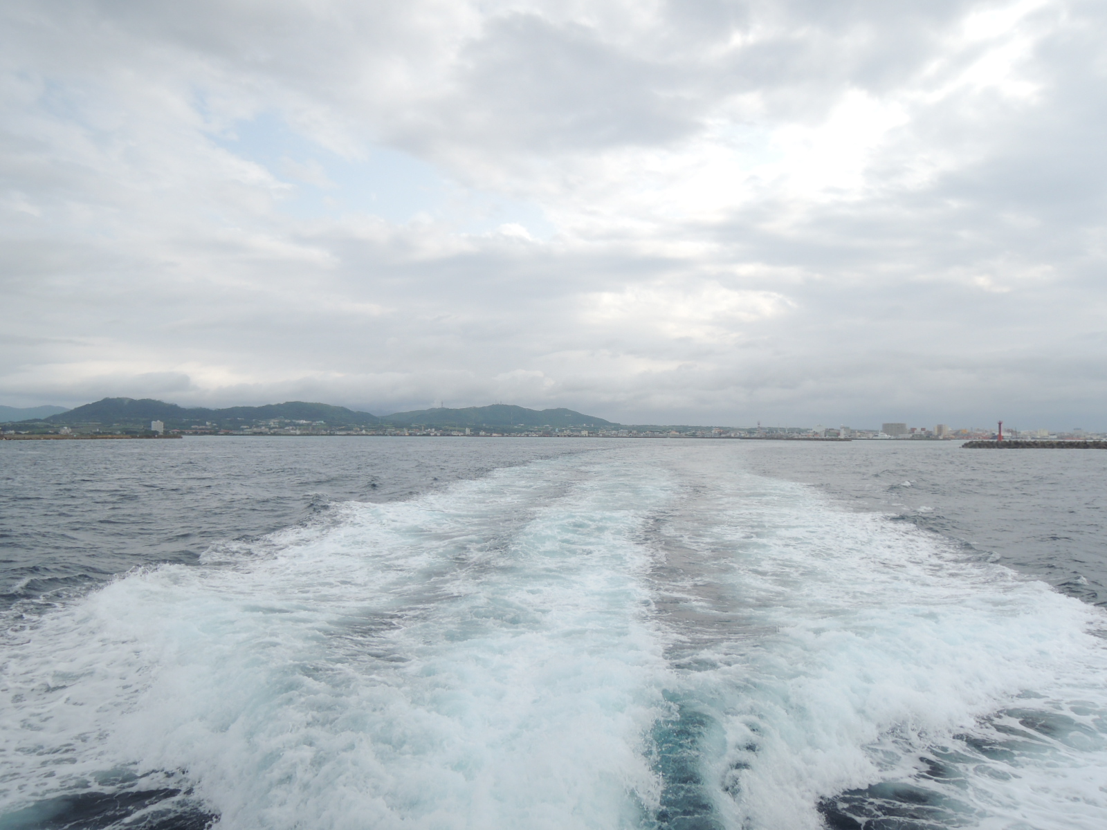 高速艇の三分の一程度のスピードなので、なかなか港が遠ざかって行きません。