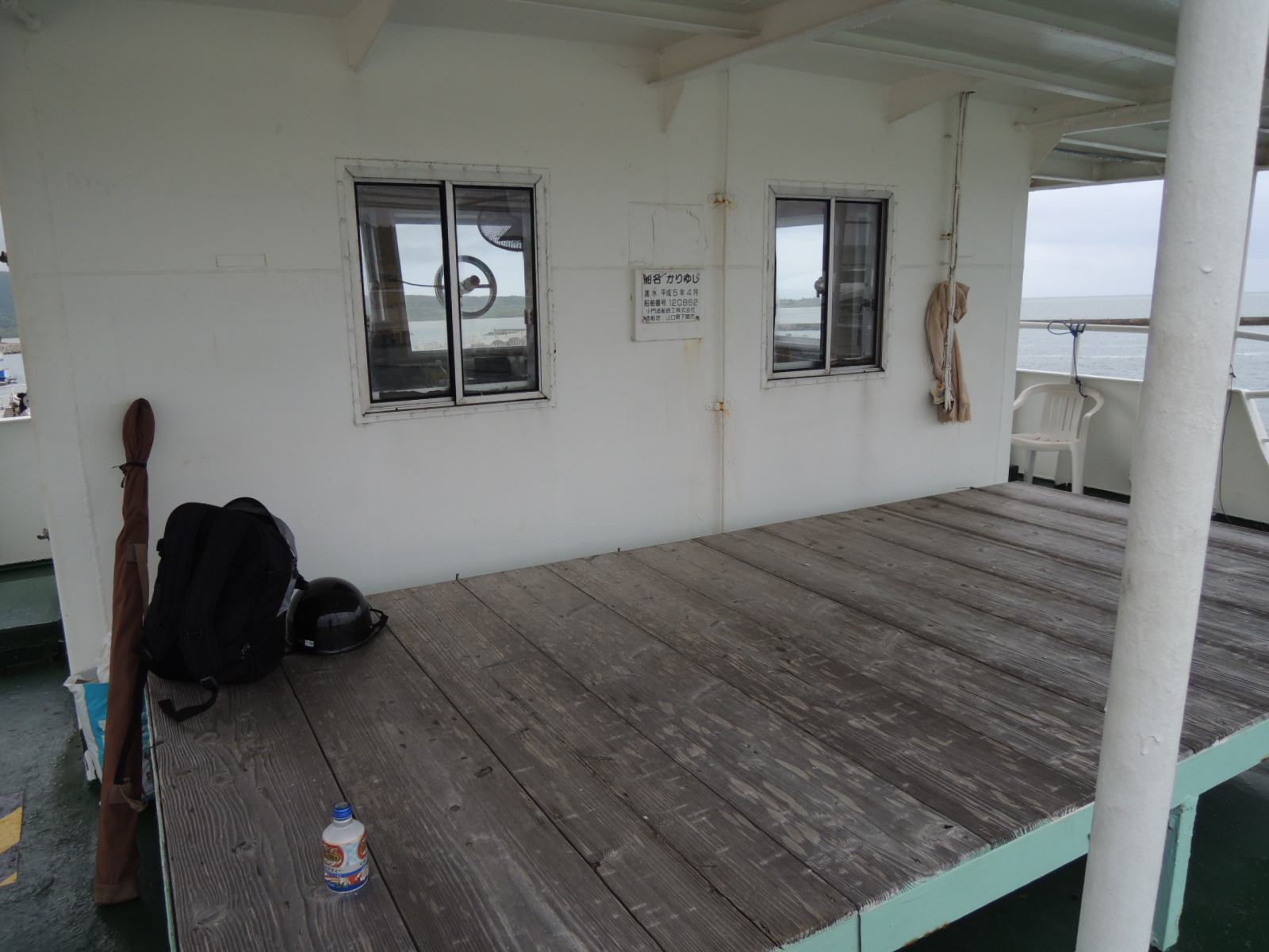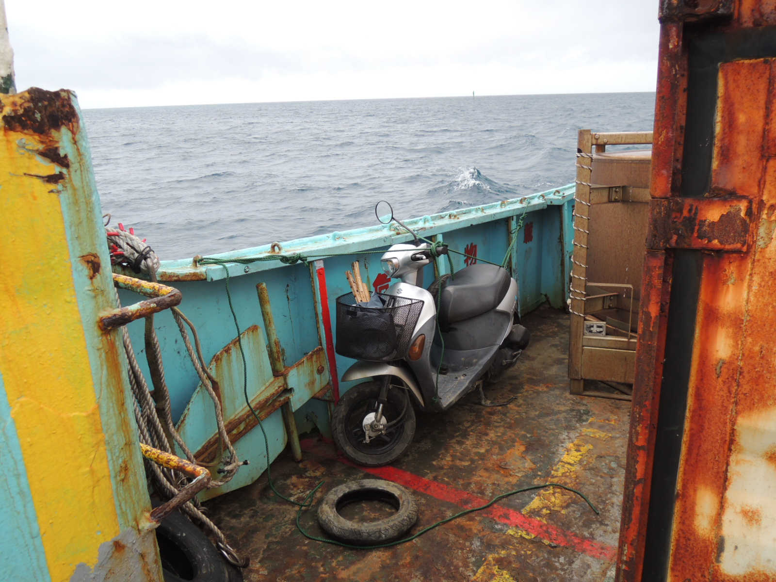 「ぱいかじ」の船艙。僕の原付は端っこに括り付けられました^^
