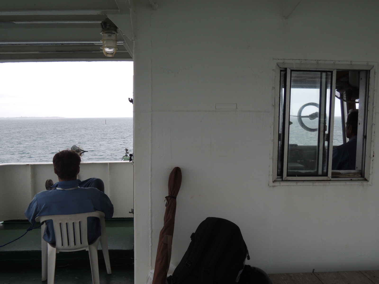 天気は悪いものの一応屋根はあるし凪いでいたので、僕はずっと外の椅子で風に当たっていました。
