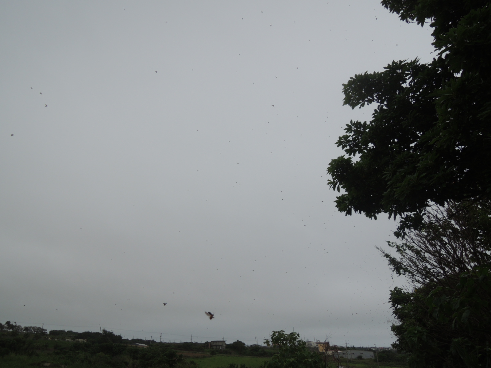 ある農道を歩いていると、前方の空一面に何か黒いものが飛び交っているのが見えました。