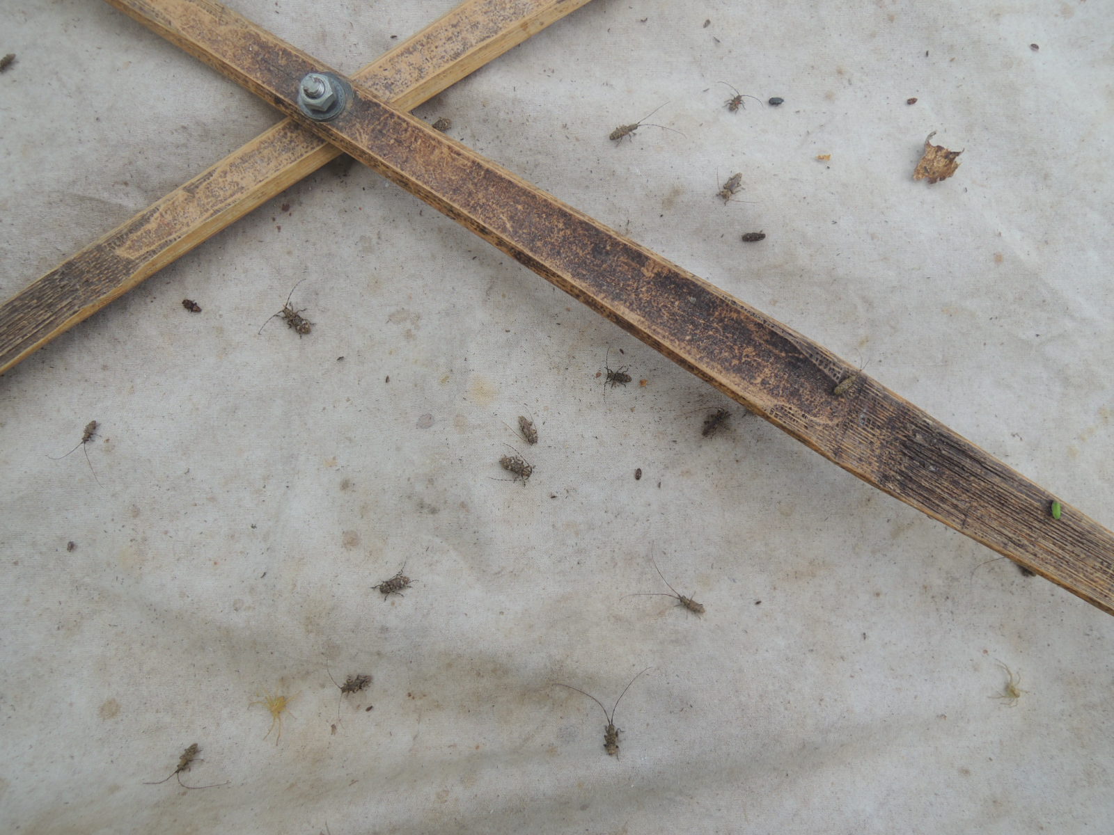 これは林縁にあった美味しそうな枯葉付きのソダを叩いたところ。