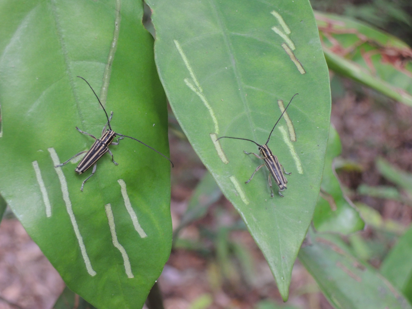 林床でひっそりと出現していたスジシロカミキリ(2014.5.7)