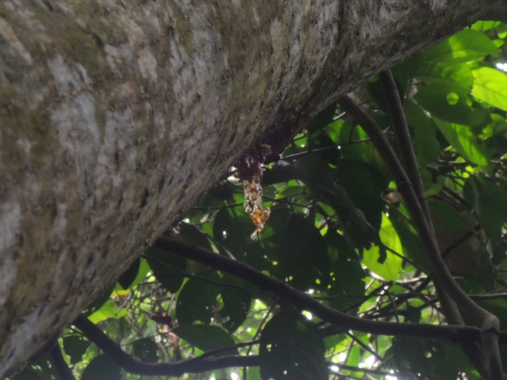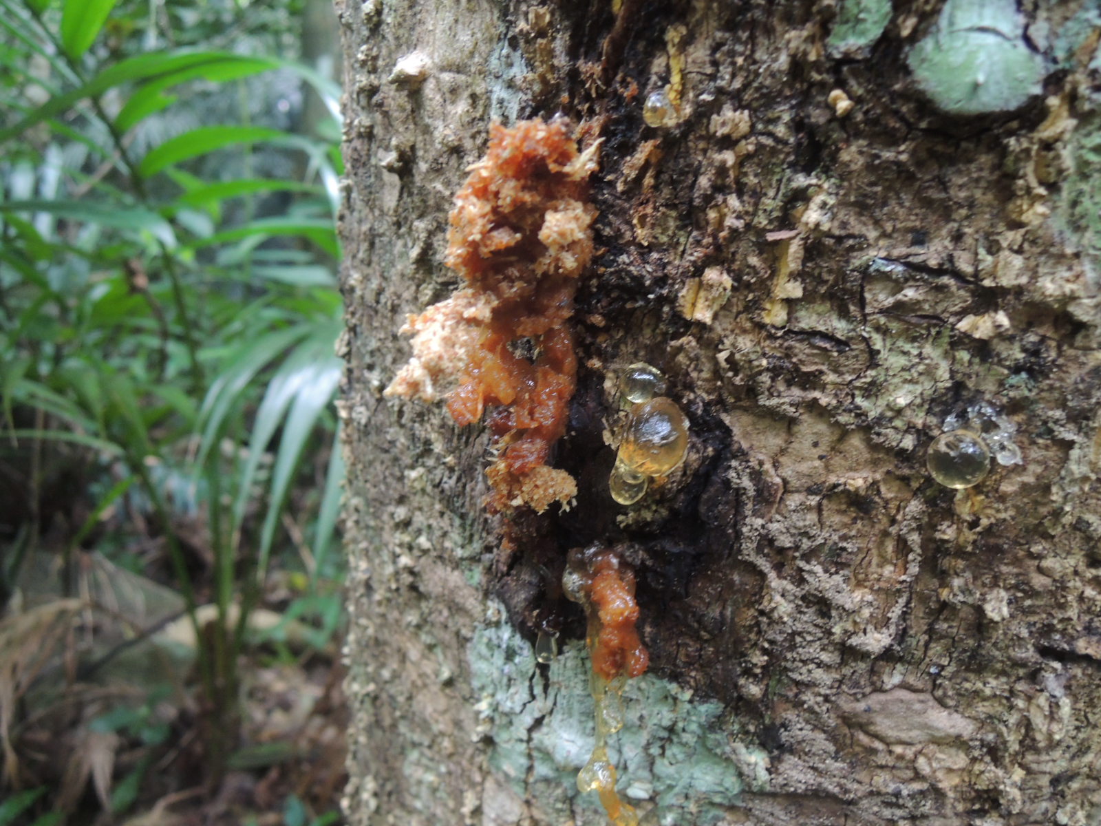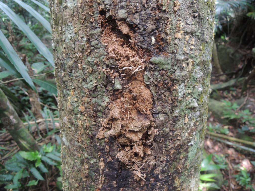 地面近くの樹皮からこぼれ出る食糞及び樹液。