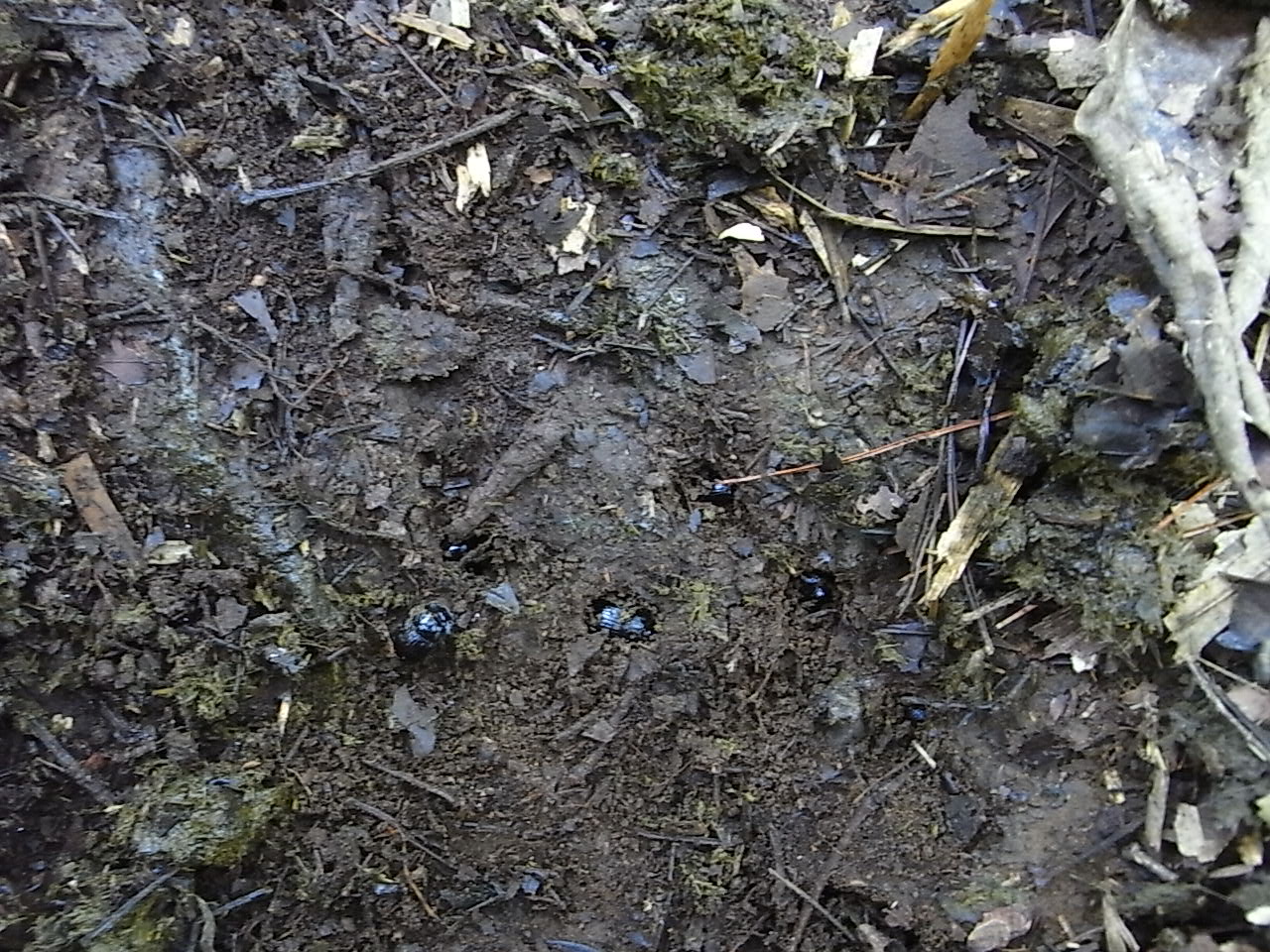 これはそうした林道の地面に直置きした牛糞を数日後によけたところです。