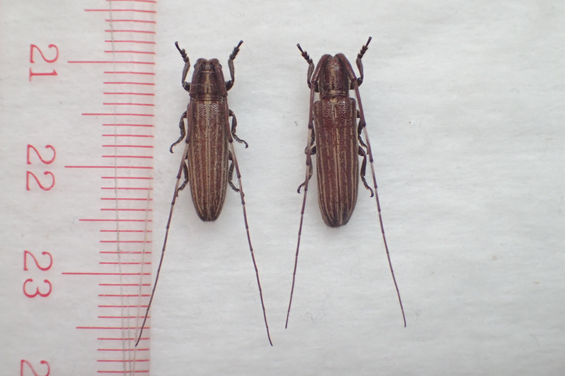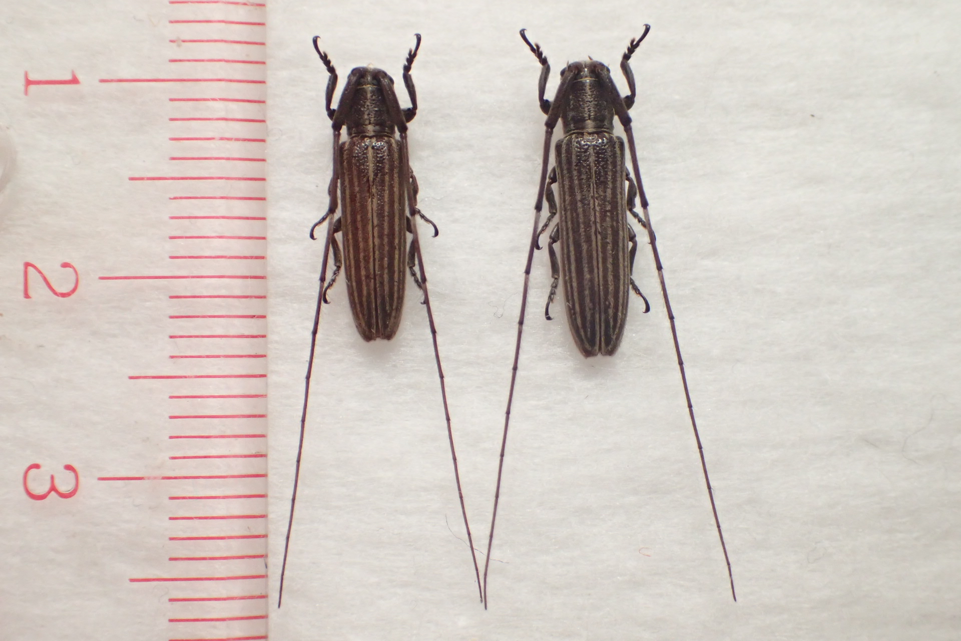 屋久島産カラカネナカボソタマムシ2♂1♀