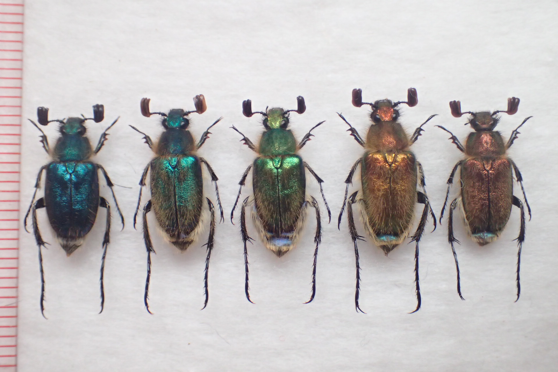食葉コガネの類を現地ではクリスマス・ビートルと称します。今回は自力採集の4種を出品中。