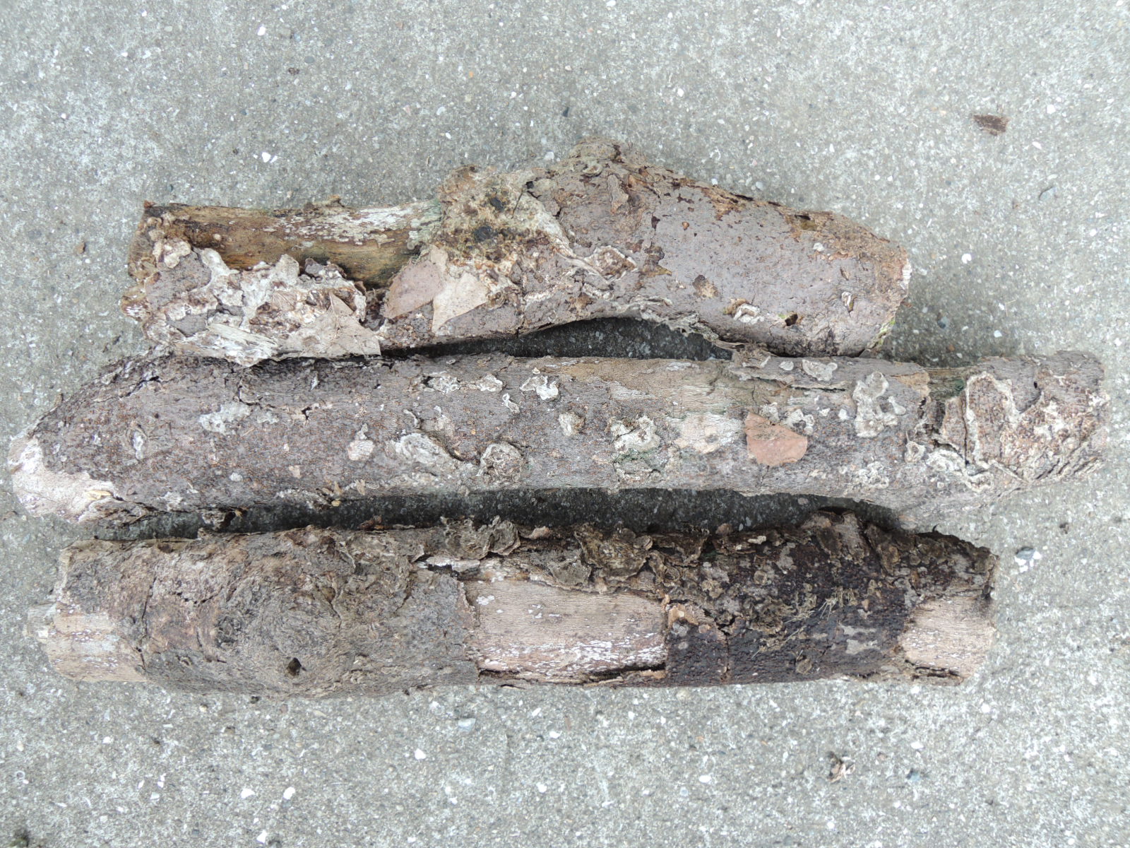 一気に蛹室付近の朽木塊を削り取ると、腹面を向けた格好の♂が現れます。