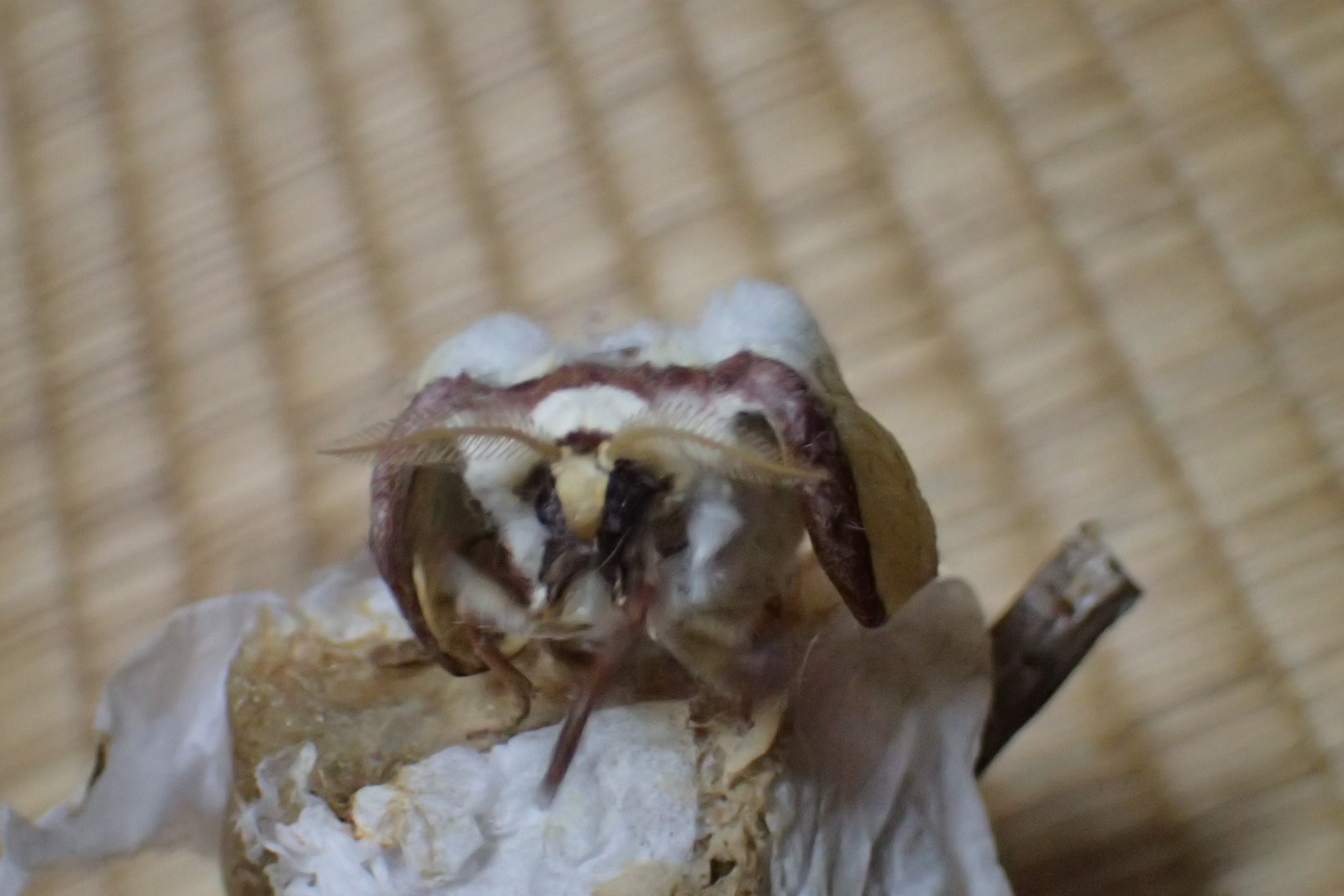 驚くことに結構強固な繭の繊維を僅か数分でかき分けて頭部が現れてきたので、慌ててデジカメを