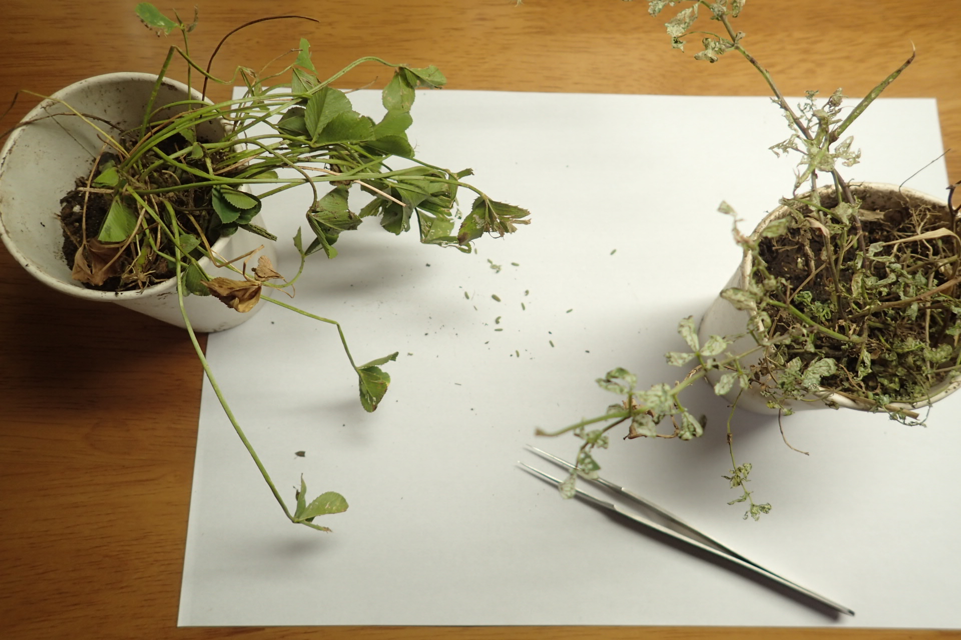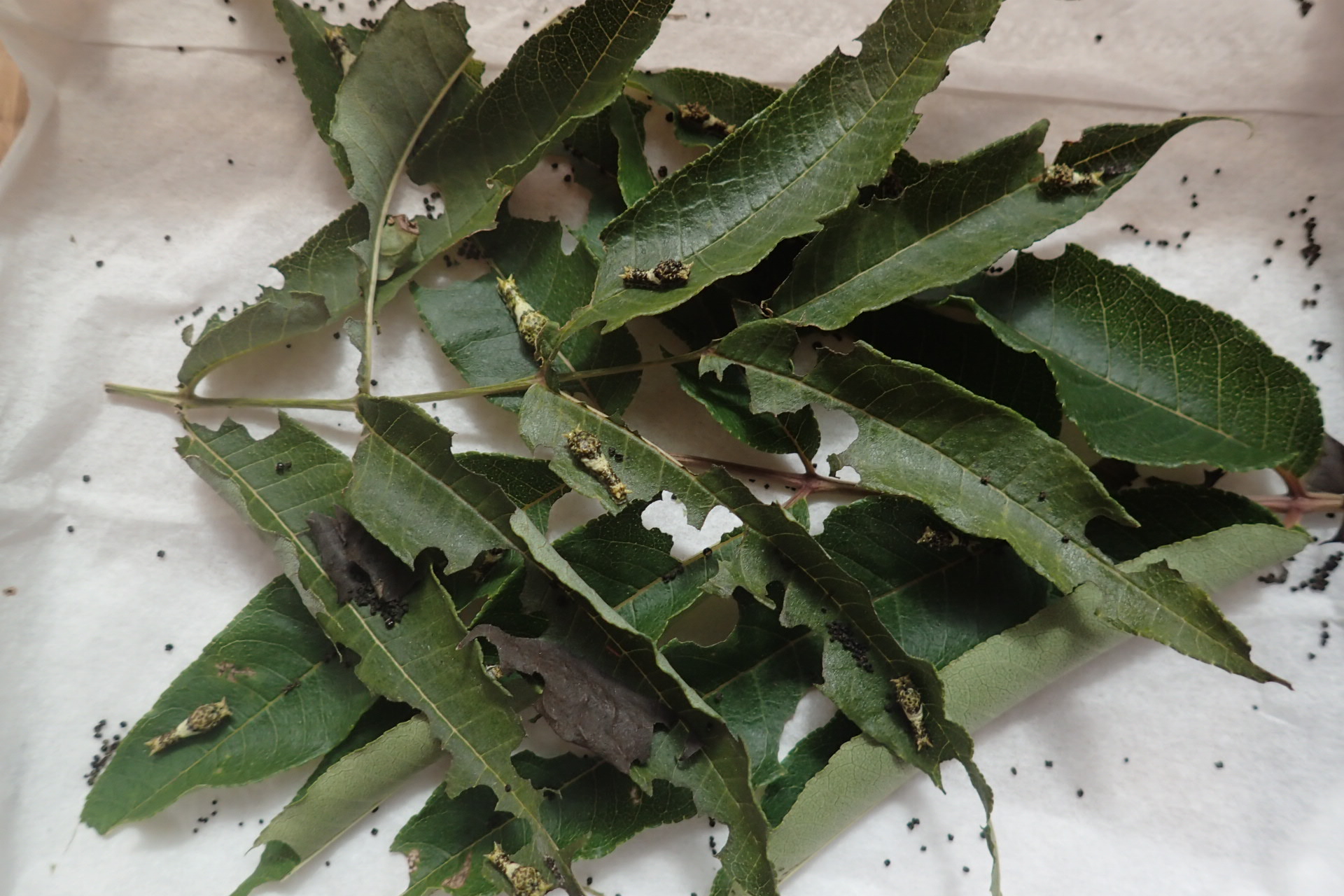 幼虫達が一度に新たな食草に移動するわけではないので、数日に渡り毎日この回収作業を繰り返し