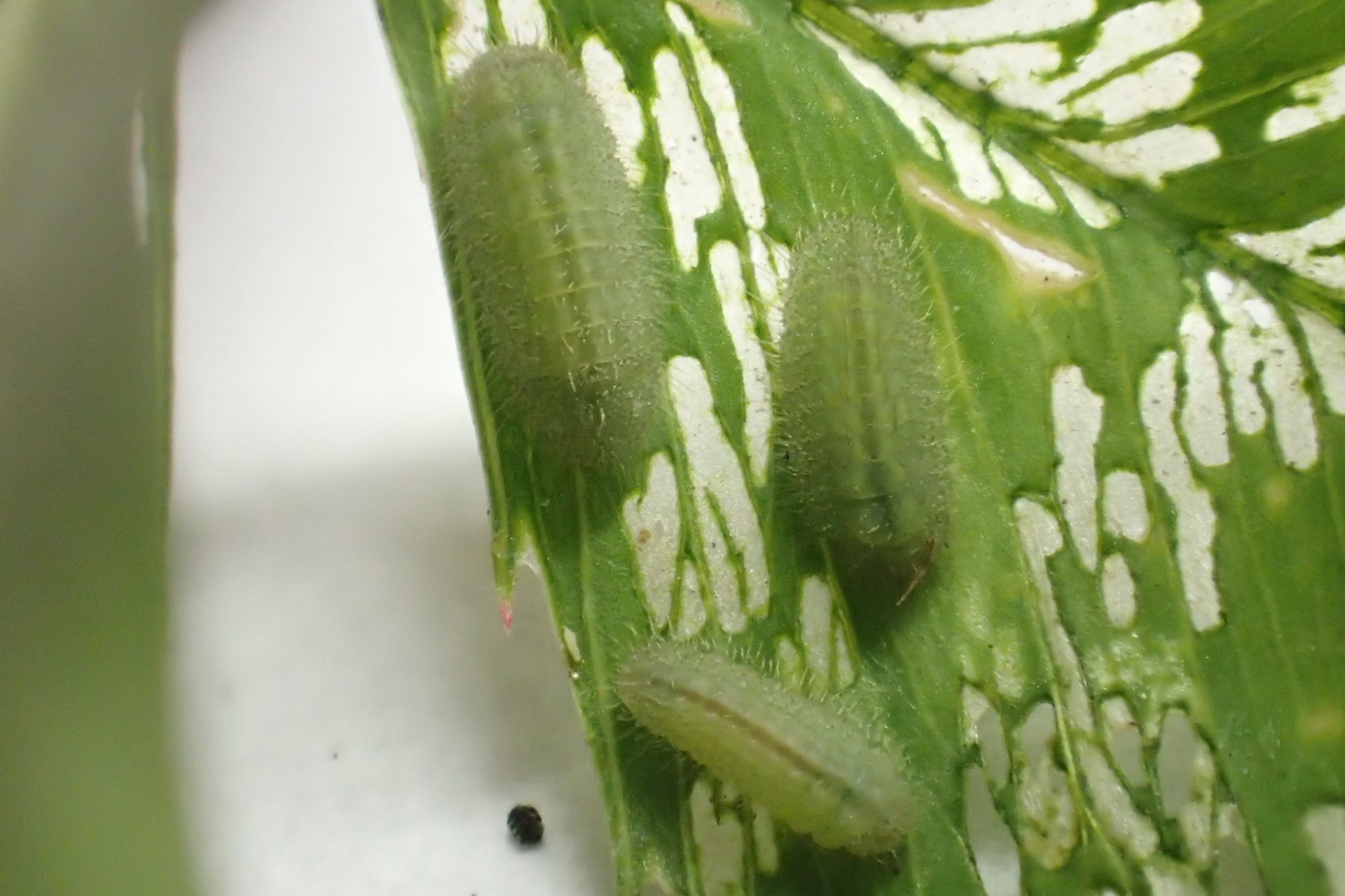 複数の母蝶がほぼ半月に渡って産卵を続けたので、幼虫の成長速度にはかなりのバラツキが