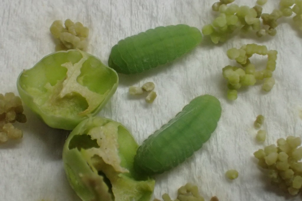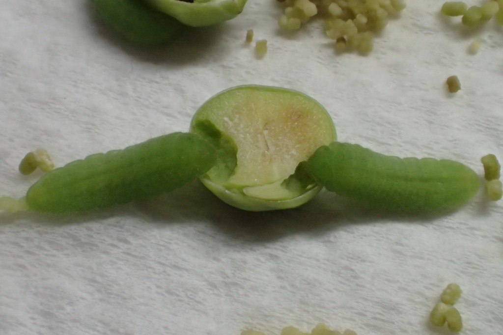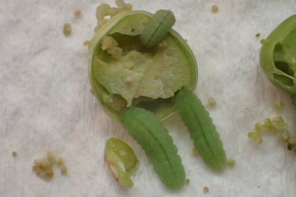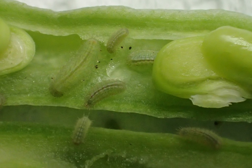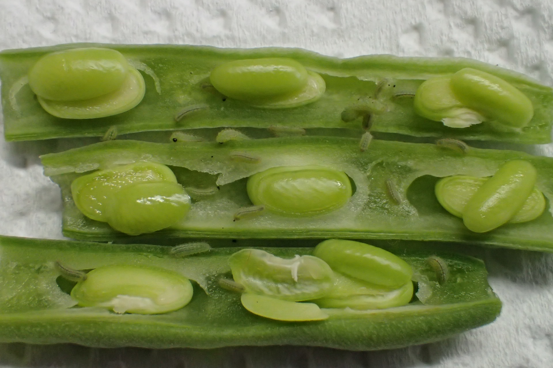 ただ、2齢になったばかりの小さな幼虫にはこうした柔らかい小さなマメの方が適しているとも言え、