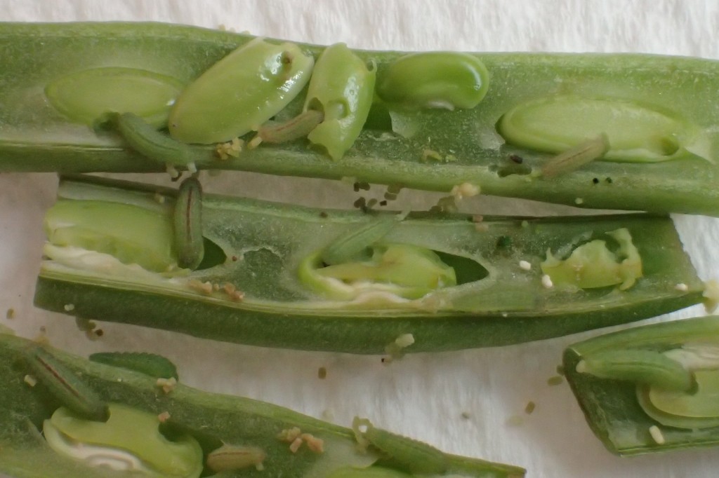これこれ。サヤを開くと大きなマメがぎっしりで、インゲンとはコスパが雲泥の差@@