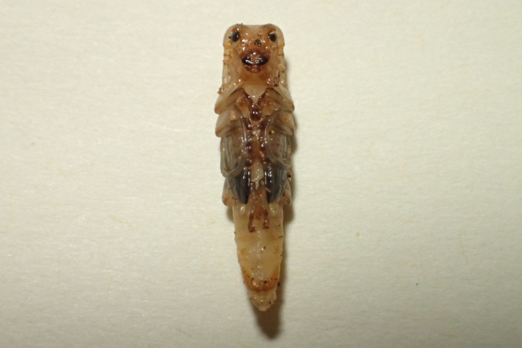 5月の幼虫に比べると「仮面」の外側のツノがやや強く湾曲しているような感じも受けます。