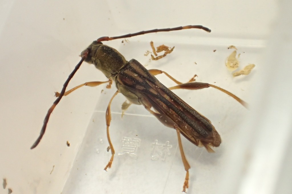 イリエシラホシサビカミキリ。室内管理なので早々と羽脱しましたが、野外ではGW後からシーズンとなる