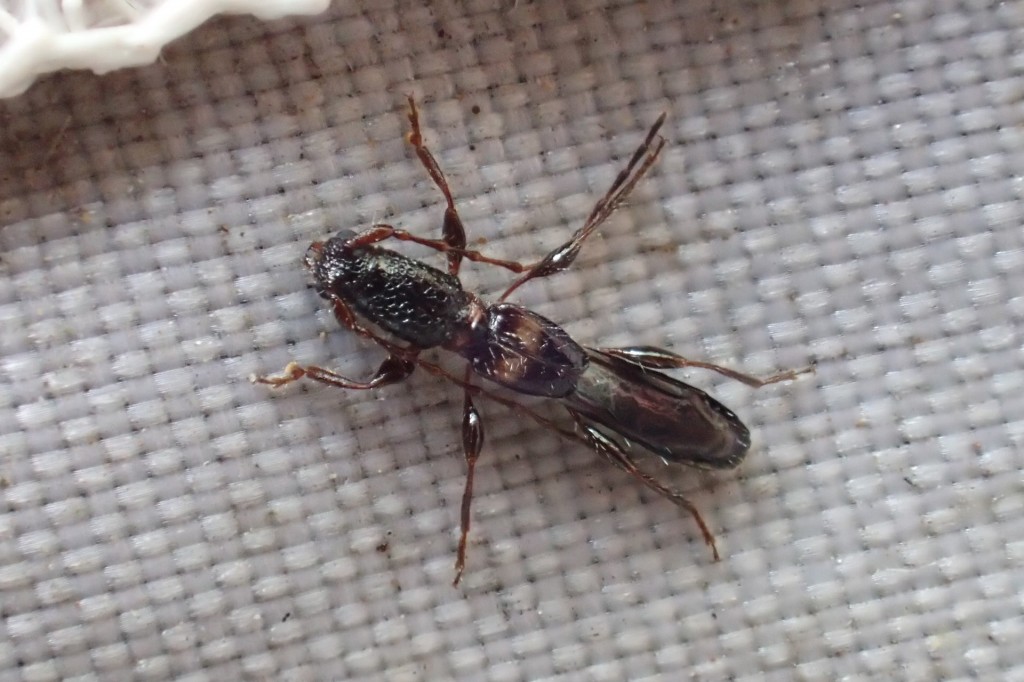 自宅で管理している材からはこんなのも出ています。脱出口のあるホストのテイカカズラ枯蔓に留まる
