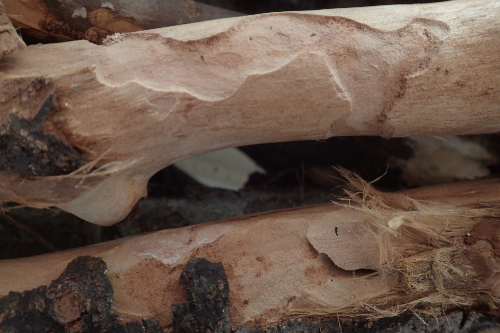 こんな細い材にトガリバはまず入りませんが、ハナカミキリの食痕が多かったので一応キープ。