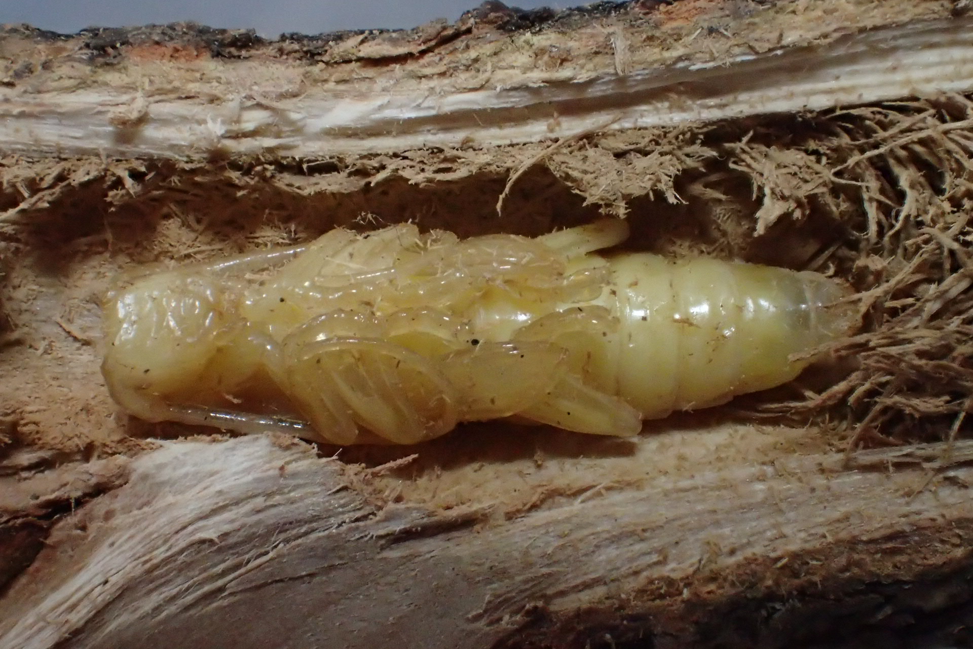 人工飼料の中に作られた蛹室に居るのは・・・