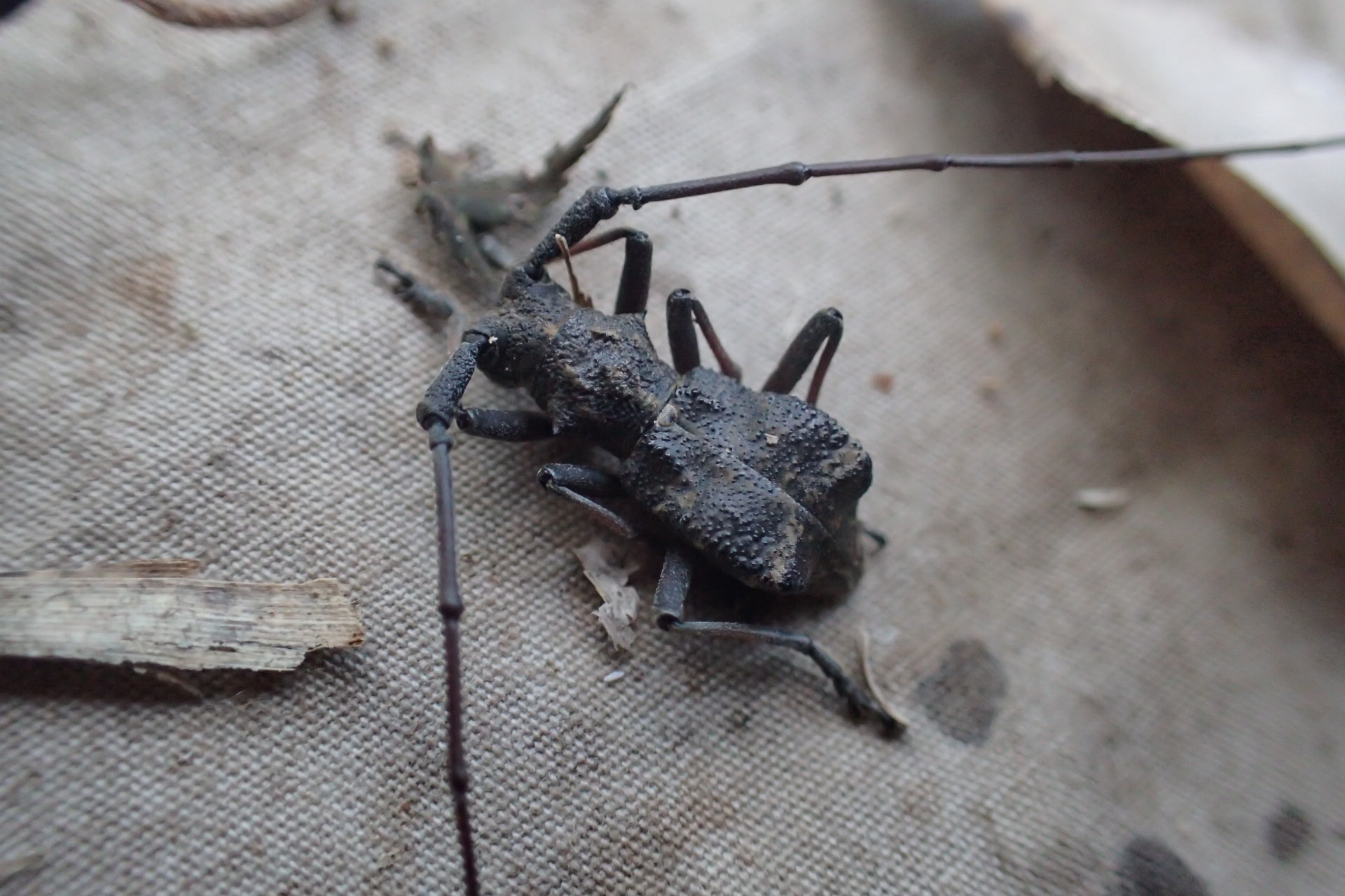 先日、西表島で採ってきたイリオモテコブスジツノゴミダマが入ったサルノコシカケ様の盤状キノコを、